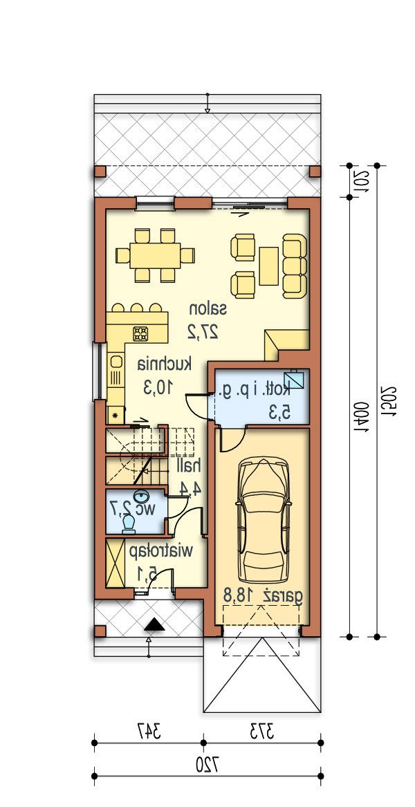 - Min. wymiary działki 22.02x14.20 m