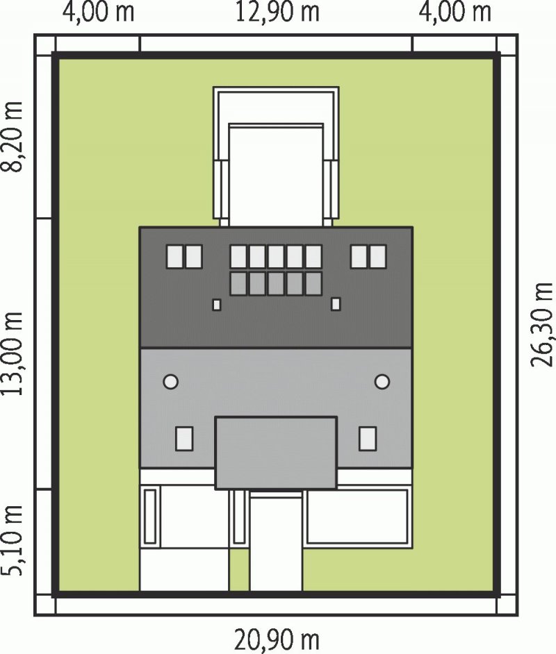 - Min. wymiary działki 20.90x26.30 m