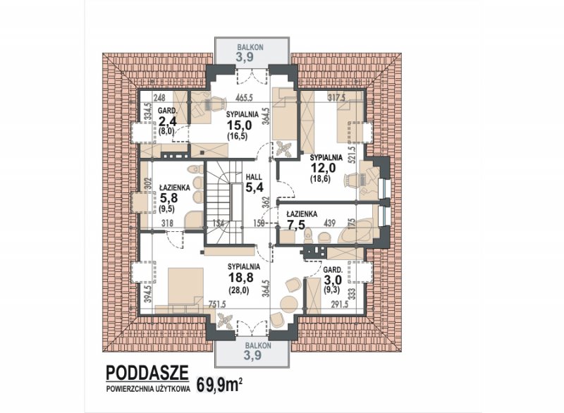 - Wysokość budynku 9.18 m
