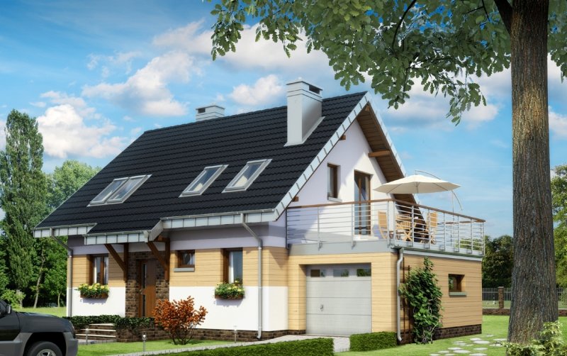 Figa Neo jest najmniejsza z 6 projektów Rodziny Figi Archetonu, opartych na wspólnym pomyśle architektonicznym. Proponują one większe lub mniejsze powierzchnie pomieszczeń, rozwiązanie z pokojem nad garażem, wariant do zabudowy bliźniaczej oraz dom z czterospadowym dachem, inspirowany architekturą staropolskiego dworku. Projekt domu Figa Neo reprezentuje architekturę najprostszą i najbardziej nowoczesną w rodzinie. Podkreśla to płaski dach nad garażem, zaprojektowany jako taras z lekką balustradą. Na wskroś nowoczesnym detalem ( charakterystycznym dla całej rodziny) jest także ażurowy ryzalit w ścianie ogrodowej. Wpuszcza mnóstwo światła do salonu i przybliża ogród do wnętrza domu. Duże przeszklenie jest nie tylko efektowne, ale absorbując darmową energię słońca pomaga realizować energooszczędne cele architektury.