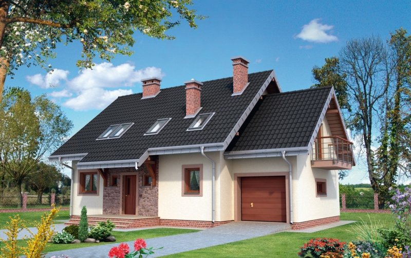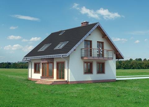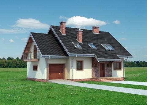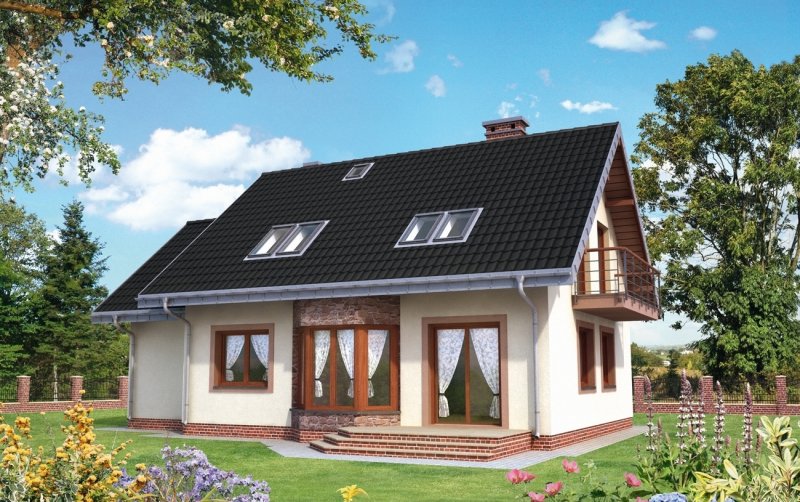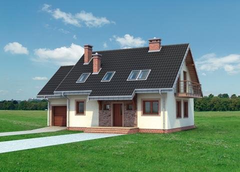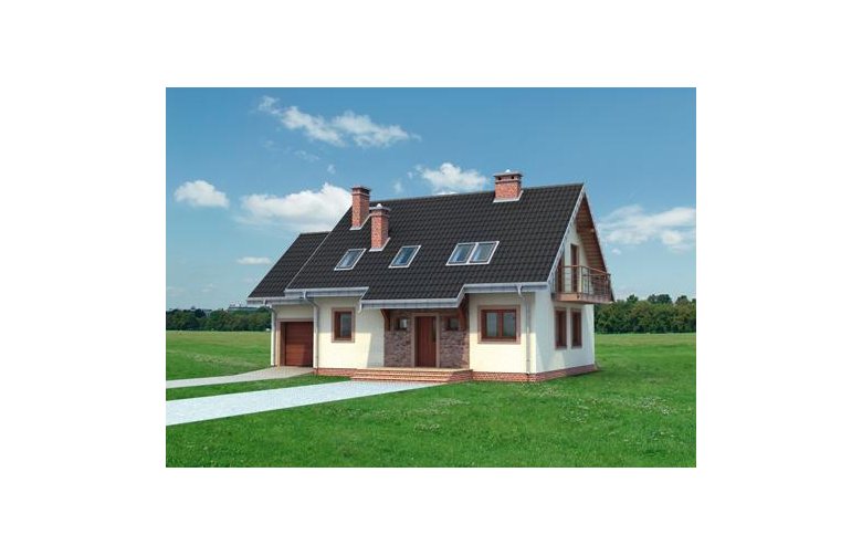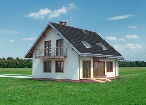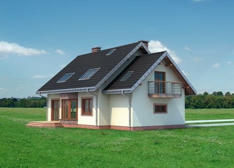 Ryzalit na rzucie ośmiokąta często wzbogaca bryłę prostych projektów domów. W Rodzinie Figi stanowi element salonu w elewacji ogrodowej. Projekt domu Figa Rex jest największy spośród kilku pokrewnych, niedużych domów parterowych z użytkowym poddaszem o prawie identycznym programie użytkowym. Jako jeden z dwóch oferuje użytkowe poddasze nad dostawionym garażem. Wszystkie wersje powstały na planie prostokąta podzielonego konstrukcyjnie na dwie połowy, a proporcje niemal kwadratowego rzutu wydłużają się lekko, równolegle do kalenicy dwuspadowego dachu i elewacji frontowej wraz ze wzrostem powierzchni wariantów. Część frontowa z kuchnią, ma charakter gospodarczy: otwarty hol rozprowadza wejścia z sieni, łazienki i kotłowni wykorzystującej miejsce pod schodami na poddasze. Sypialnię od ogrodu można włączyć do pokoju dziennego rezygnując ze ścianki działowej. Projekt domu Figa Rex ma na poddaszu cztery duże sypialnie dla pięciu osób i łazienkę. Pokoje oświetlają szerokie wyjścia na balkony w ścianach szczytowych. Poza opuszczonymi częściowo okapami dachu nad ryzalitem i wejściem do domu, stanowią one jedyne detale urozmaicające zwartą bryłę.
