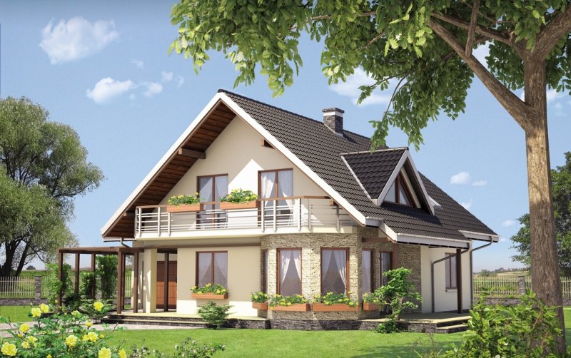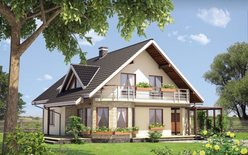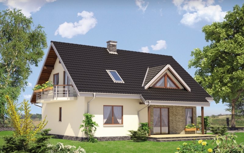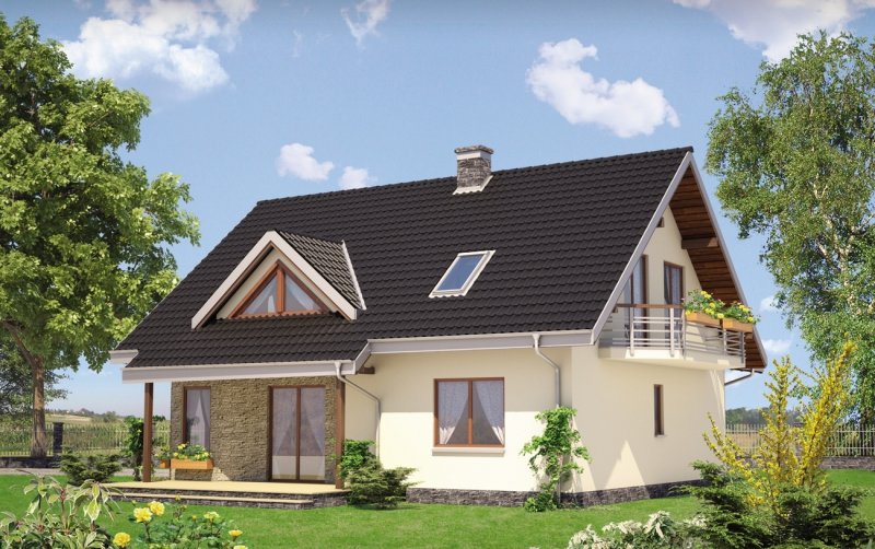 Projekt domu Filipinka jest rozwiązaniem, które spośród innych parterowych propozycji z użytkowym poddaszem średniej wielkości wyróżnia kilka elementów. Są nimi głównie: schemat planu w kształcie litery T i jadalnia w ośmiokątnym, narożnym ryzalicie. Przenikające się dwuspadowe dachy nad częścią mieszkalną i garażową urozmaica tylko jedna mała trójkątna lukarna nad podcieniem tarasu ogrodowego w ścianie bocznej. Budynek zwraca się do wjazdu szczytem korpusu mieszkalnego. Niższa część garażowa ustawiona jest ku frontowi kalenicą. Sylwetka ta przypomina koncepcje mniejszej Mai Tytan i zbliżonych rozmiarem: Tezeusza czy Ametysta – projektów, które także mają dodatkowy pokój na parterze. Żaden z nich nie oferuje jednak kuchni bezpośrednio oświetlonej oknami z dwóch stron świata, z wglądem na drzwi wejściowe Jest to możliwe za sprawą ulokowania garażu głębiej na działce i uformowania podcienia w bryle mieszkalnej. Strefa dzienna w projekcie domu Filipinka pozostaje otwarta ale ma wyraźnie oddzielony salon. Część nocną stanowią cztery pokoje poddasza, w tym główna sypialnia z prywatną garderobą. Balkony urozmaicają wszystkie trzy ściany szczytowe.