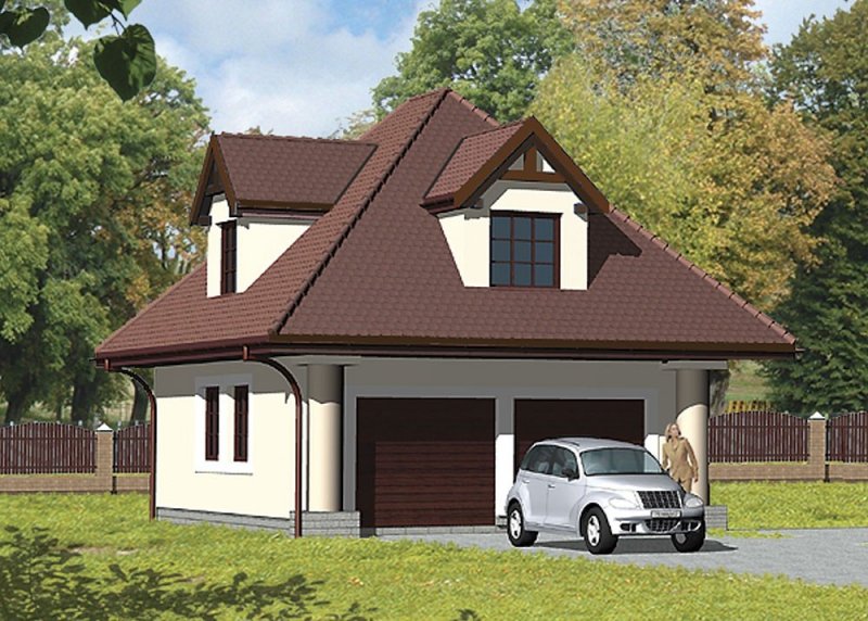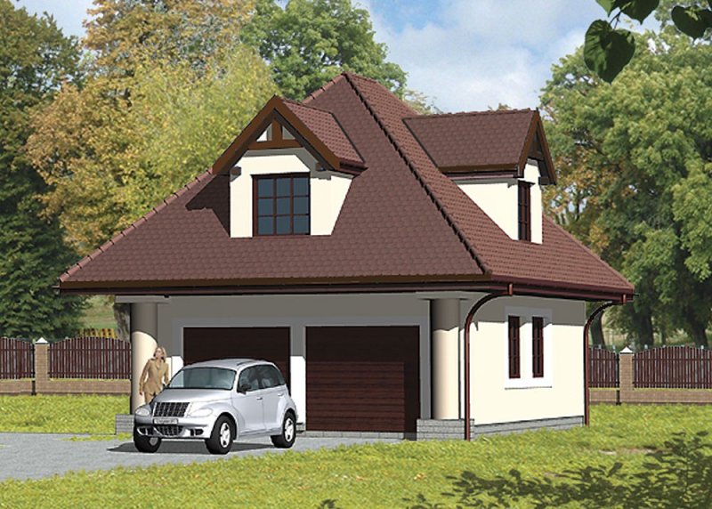 Wolnostojący garaż dwustanowiskowy z poddaszem.
