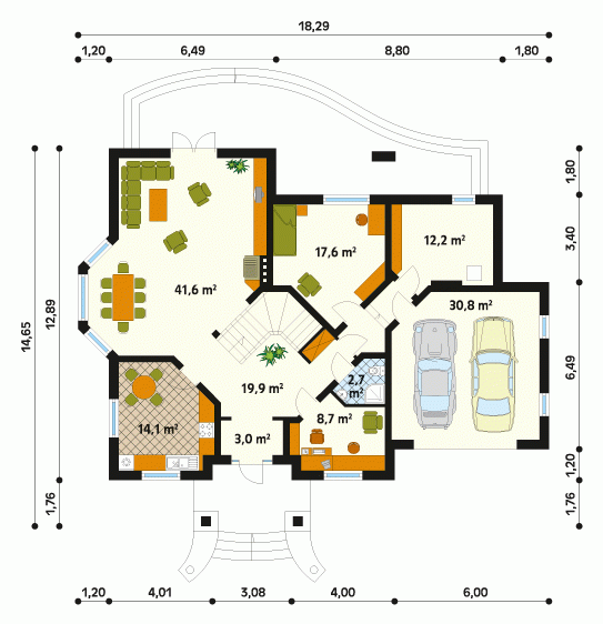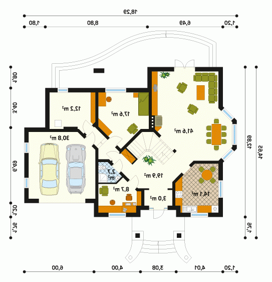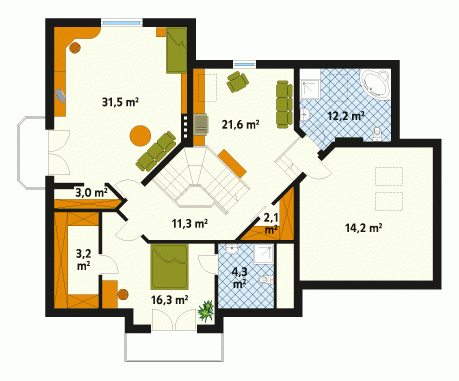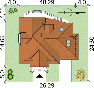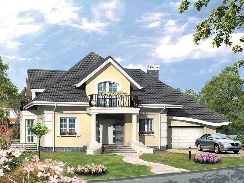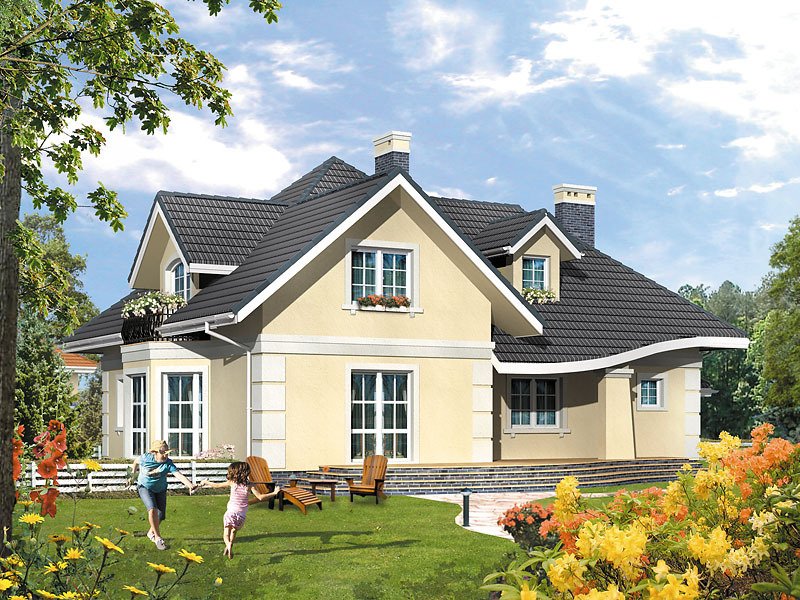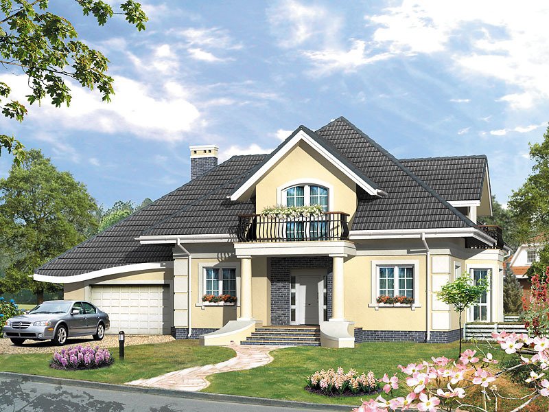 Jednorodzinny dom parterowy z poddaszem użytkowym, niepodpiwniczony dla 4 – 5-osobowej rodziny. Nowoczesna bryła z dachem wielospadowym. Na parterze dodatkowy pokój, na poddaszu strych użytkowy.