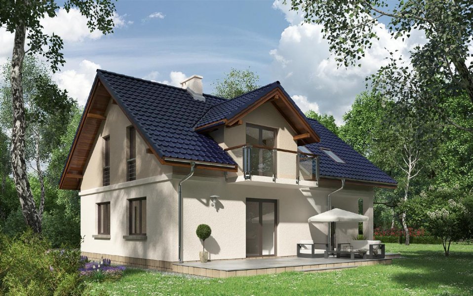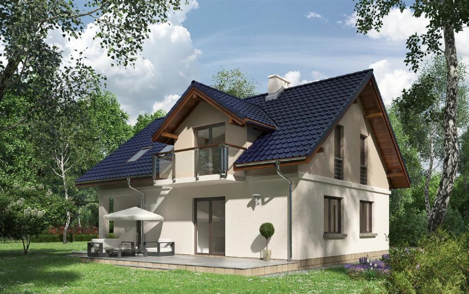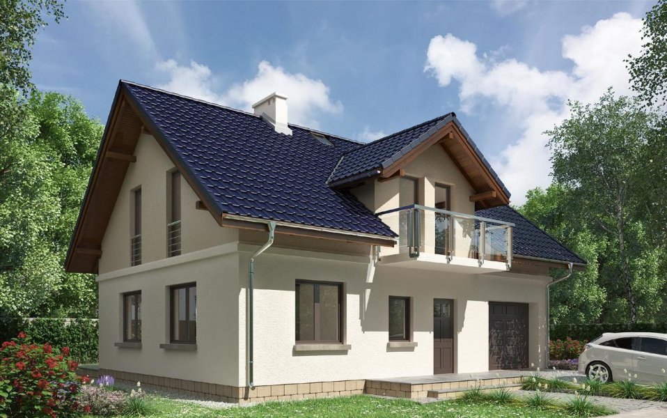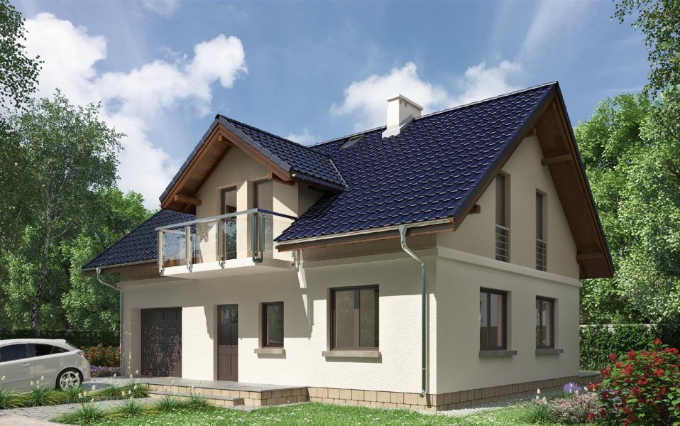 Godzisz jest projektem niewielkiego domu parterowego z użytkowym poddaszem i wbudowanym garażem o dość zwartej bryle. Wśród podobnych propozycji z dwuspadowym dachem wyróżnia go nieduża wysokość do kalenicy skierowanej równolegle do drogi dojazdowej oraz niewielkie podpiwniczenie w części wejściowej (łatwe do powiększenia w adaptacji). Program użytkowy nie odbiega od standardu oferując otwartą strefę dzienną z małą łazienką na parterze, a na poddaszu trzy sypialnie i dużą łazienkę. Na uwagę zasługuje bardzo wygodna sień z miejscem na dużą szafę oraz lokalizacja kominka. Mimo jednoprzestrzennego charakteru pokoju dziennego wyraźnie wydziela on kuchnię i obszerny hol dając zwolennikom tradycyjnej organizacji przestrzeni mieszkalnej możliwość zamknięcia pomieszczeń ściankami działowymi. Kotłownia przy garażu znajduje się na tym samym poziomie i jest łatwo dostępna przez hol z przedsionka prowadzącego do piwnicy. Projekt domu Godzisz powstał z myślą o terenach objętych ochroną krajobrazu, stąd stosunkowo niewielka wysokość ścianek kolankowych. Elewacje boczne są gładkie, a frontową i ogrodową urozmaicają lukarny z balkonami.