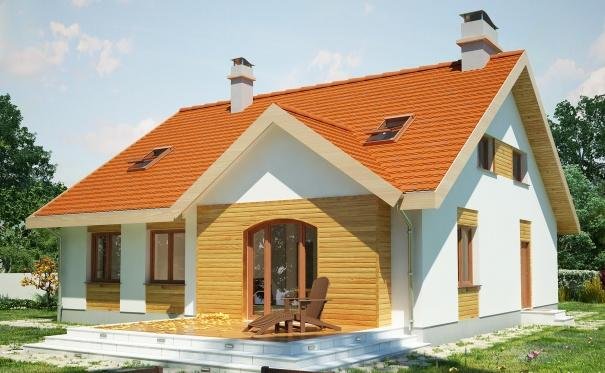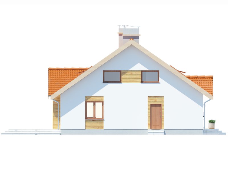Wygodny parterowy domek z funkcjonalnym i rozkładowym układem pomieszczeń. Trzy sypialnie i łazienka stanowią strefę nocną, natomiast do strefy dziennej należy przestronna kuchnia i piękny salon z kominkiem, którego ciepło może być wykorzystane do ogrzania całego domu. Duża kotłownia daje możliwość zastosowania różnego rodzaju opału. Kolejną zaletą tego domu jest to, że możemy powiększyć jego powierzchnię adaptując poddasze.