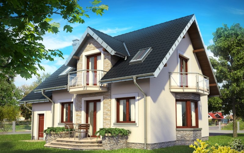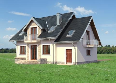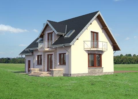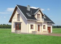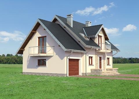 Parterowy dom z użytkowym poddaszem, zwykle z częścią gospodarczą przy ściany bocznej, to najbardziej ekonomiczna propozycja dla indywidualnych inwestorów w budownictwie mieszkaniowym. Takie są projekty domów małych i średnich: Zoja, Zofia i Helena z balkonem na ryzalicie w ścianie szczytowej. Wszystkie wykorzystują przestrzeń pod dwuspadowym dachem nad obiema częściami budynku, gdzie rozlokowano strefę nocną. Oddzielono w niej różnicą poziomów główną sypialnię z własną łazienką. Na parterze jest pokój dzienny z jadalnią, kuchnia, łazienka oraz przejście pod schodami do garażu i kotłowni. Projekt domu Helena Prima, najmniejszy w Rodzinie Heleny, oferuje najszczuplejsze powierzchnie 4 sypialni na poddaszu i pomieszczeń parteru, bez spiżarni przy kuchni. Projekty z tej rodziny (bez Heleny Neo) mają oddzielone uskokiem i osobnymi dachami bryły części mieszkalnej i garażowej. Symetryczny rysunek lukarny nad wejściem od frontu i ogrodu oraz umiejscowienie kominka przy kuchni (jak w Zofii) odróżnia je od projektów z Rodziny Zoi. W stosunku do Rodziny Zofii i Zoi Helenę odznaczają:odwrócone biegi schodów, garderoba w sieni i bardziej otwarta kuchnia.