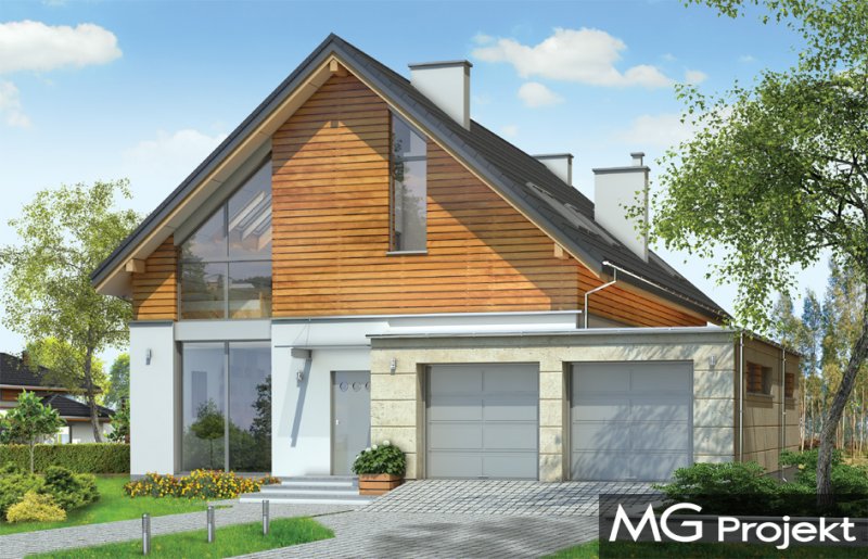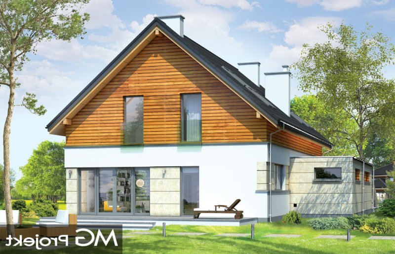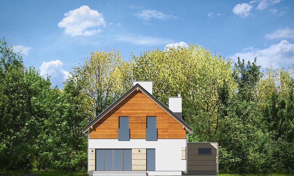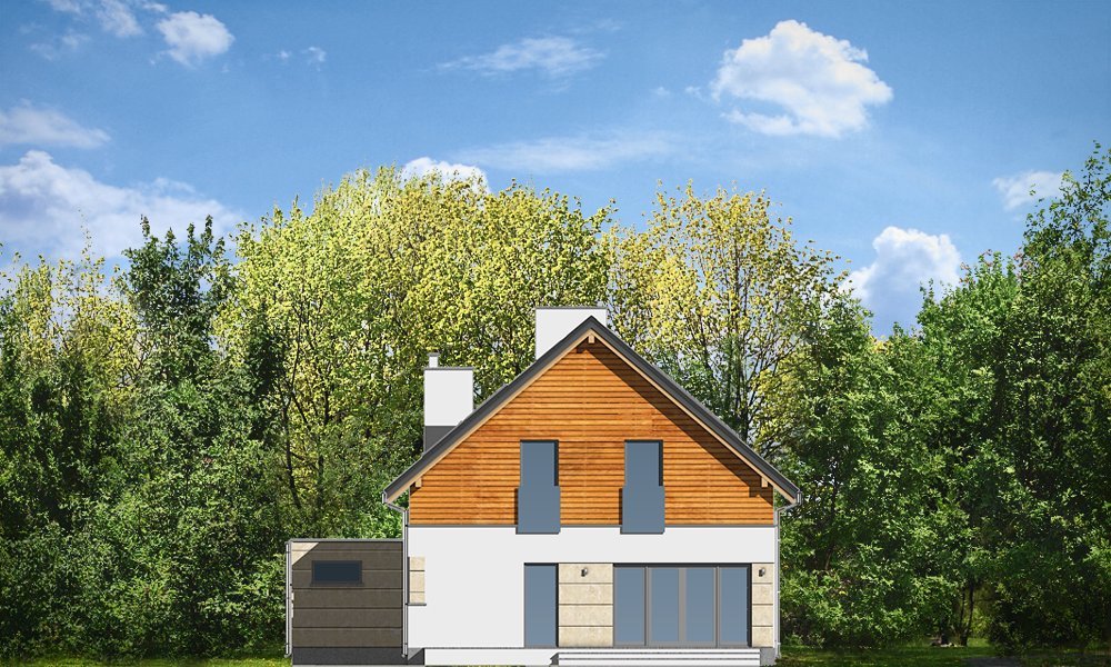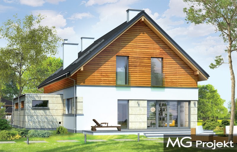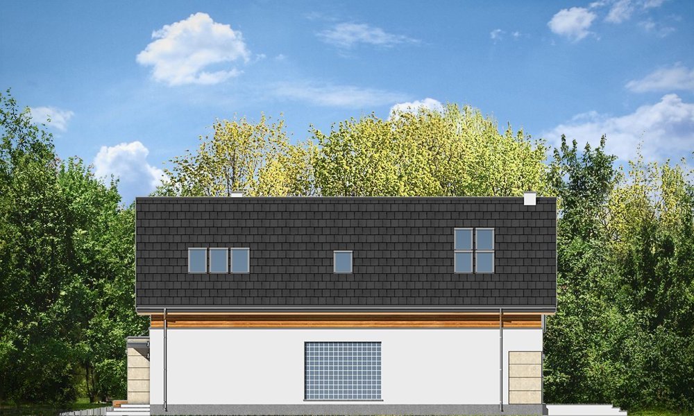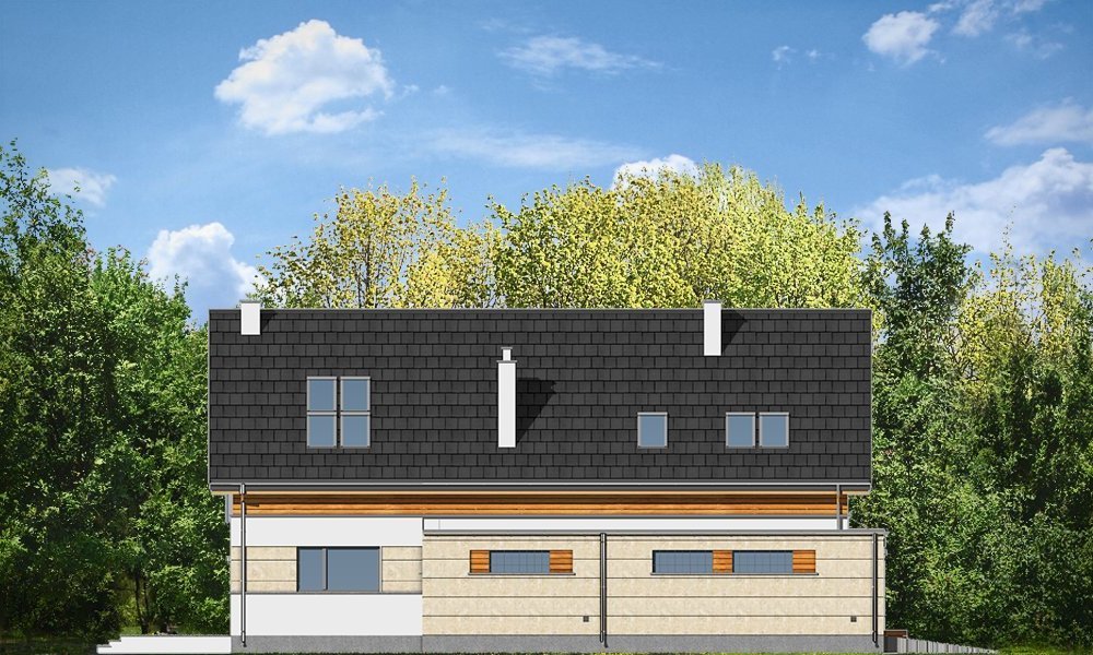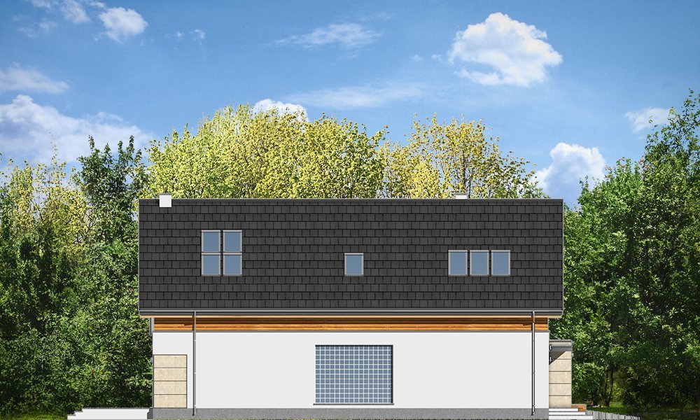Jurajski to propozycja dla rodziny cztero-pięcioosobowej. Jednorodzinny dom parterowy z poddaszem użytkowym o prostej bryle, łączącej w sobie elementy tradycji - dwuspadowy dach, i nowoczesności - współczesny detal, materiały i rozplanowanie powierzchni wewnątrz. Dom ma niemałą powierzchnię, zaprojektowano go z myślą o wygodzie czy wręcz luksusie przyszłych użytkowników. Jednocześnie zwarta podłużna bryła pozwoli posadowić budynek na wąskiej działce, tak często spotykanej. Ciekawy układ okien na elewacjach, oraz dostosowany do nich pasowy podział na różne materiały wykończeniowe ścian, nadają budynkowi oryginalnego charakteru. Wnętrze domu podzielono na część dzienną na parterze, wraz z pomieszczeniami technicznymi zgrupowanymi między garażem a kuchnią, oraz część nocną na poddaszu z apartamentem rodziców i sypialniami dziecięcymi na poddaszu. Na piętrze zaprojektowano jeszcze blisko wejścia dodatkowy pokój, mogący służyć jako sypialnia, gabinet, czy biuro. Całość domowego życia toczy się w połączonej przestrzeni salonu, kuchni i holu, no i na tarasie - dzięki dużym przeszkleniom w elewacji ogrodowej. Projekt jest idealną propozycją dla dość zamożnego Klienta, który chce mieć nowoczesny i wygodny dom, ale nie chce lub nie może wybudować domu z płaskim dachem. Pracownia posiada wersję odbicia lustrzanego projektu.