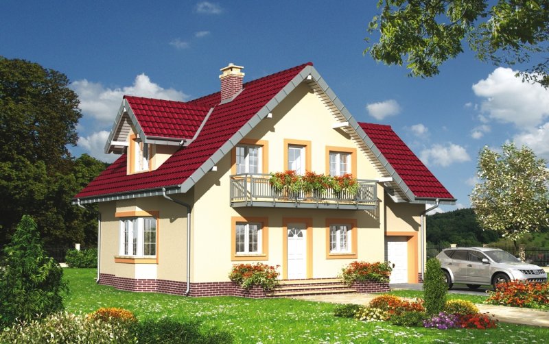 Dom parterowy, z użytkowym poddaszem, z garażem.