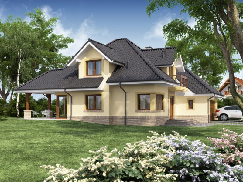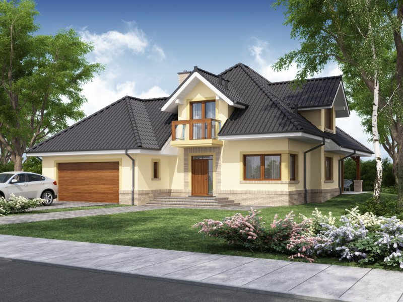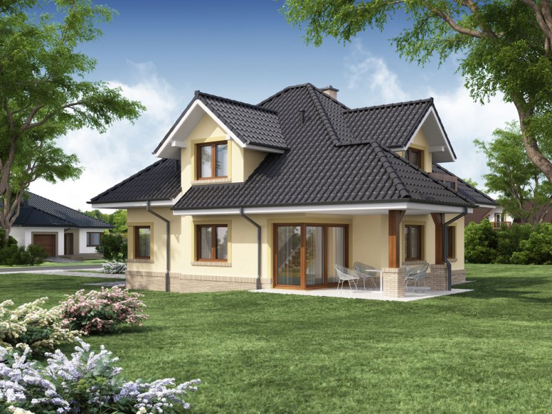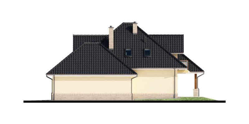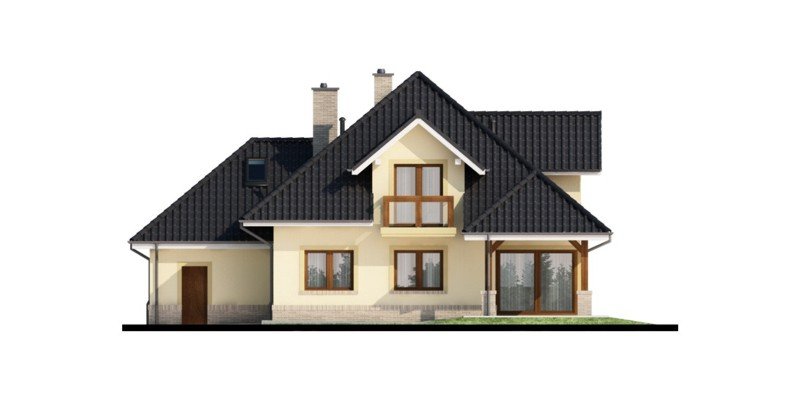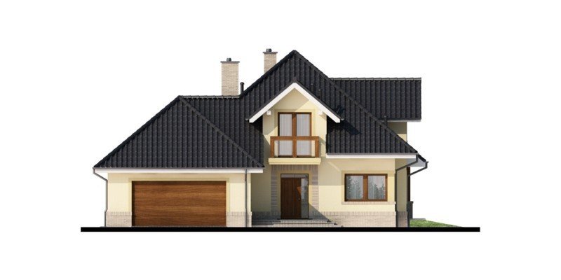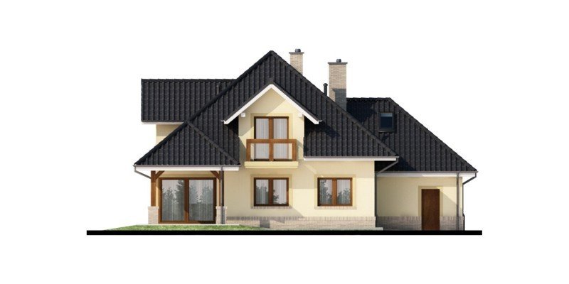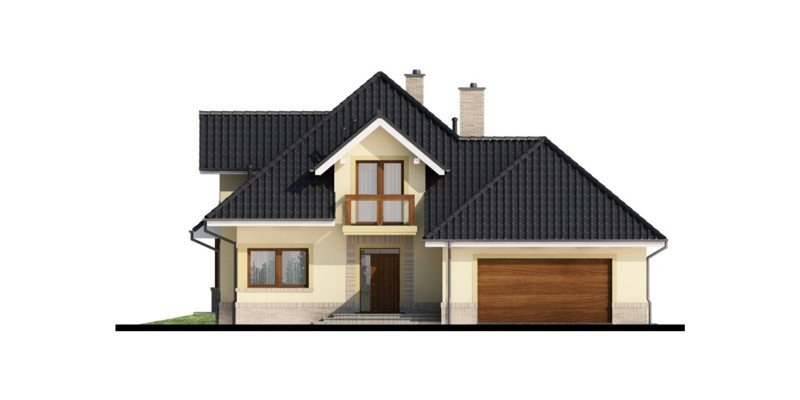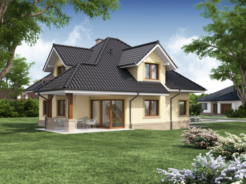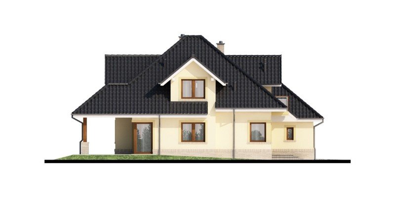 Przestronny dom jednorodzinny z poddaszem użytkowym. Przeznaczony dla 4-5 osobowej rodziny. Drewniany taras nadaje uroku i ciepła podczas wspólnego biesiadowania. Część parterowa tego domu jest bardzo przestronna, co umożliwia swobodne przemieszczanie się, nawet podczas odwiedzin gości. Dodatkowym atutem tego domu jest funkcjonalnie usytuowana jadalnia, która pozwala na podziwianie piękna ogrodu podczas rodzinnych posiłków. Pokój usytuowany za sąsiadującą ścianą salonu, dzięki dobremu zagospodarowaniu, może spełnić zarówno funkcję gabinetu jak i pokoju gościnnego. Godny uwagi jest także garaż, który w połączeniu z wiatrołapem pozwoli na przejście do części mieszkalnej bez konieczności wychodzenia na zewnątrz. Poddasze to zaciszne miejsce, na którym zaprojektowana została jasna łazienka oraz 3 niezależne pokoje w tym 2 z prywatną garderobą i balkonem.