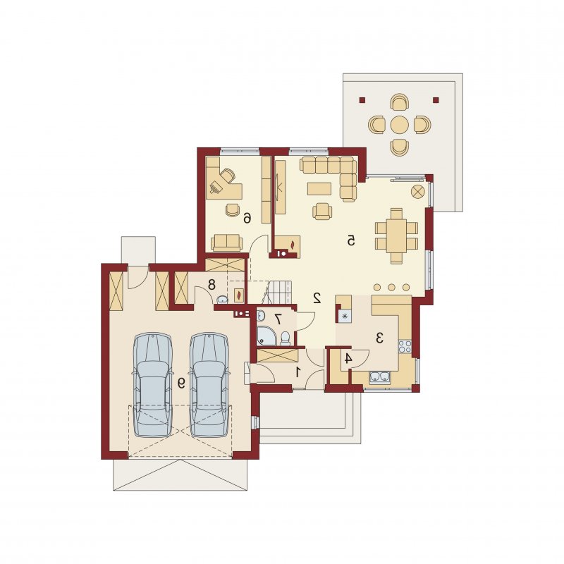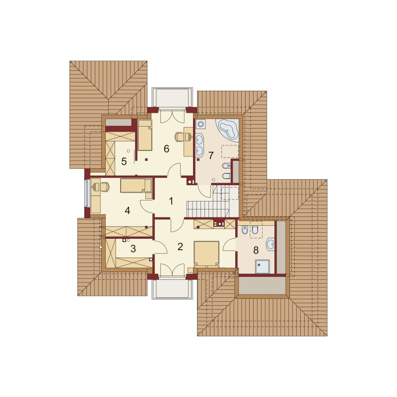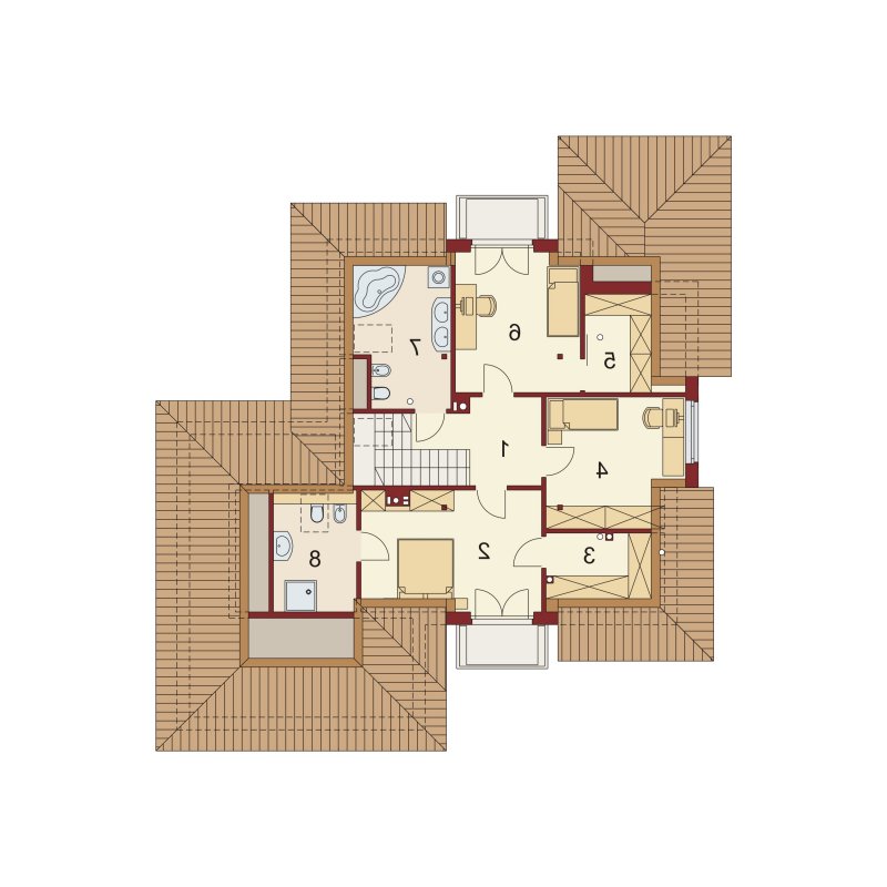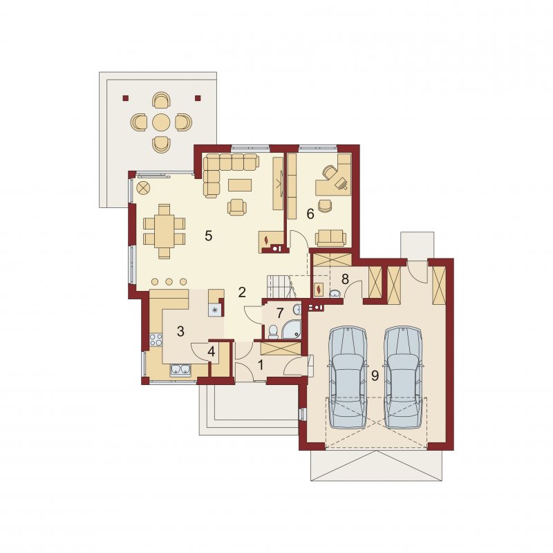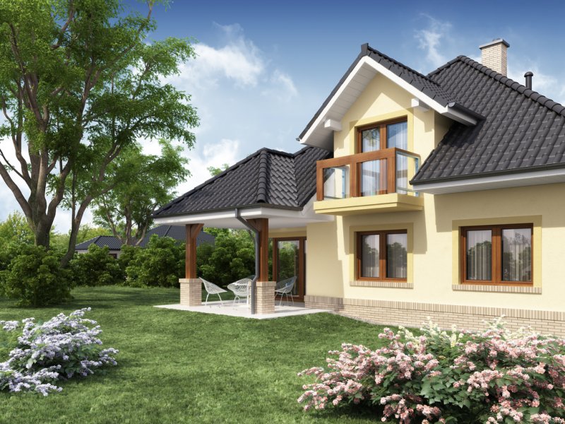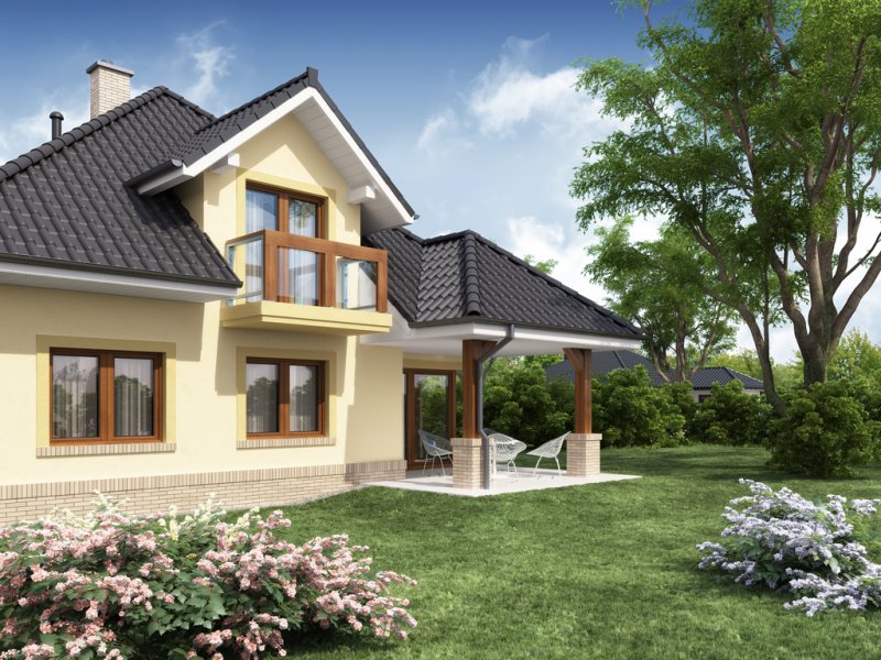Przestronny dom jednorodzinny z poddaszem użytkowym. Przeznaczony dla 4-5 osobowej rodziny. Drewniany taras nadaje uroku i ciepła podczas wspólnego biesiadowania. Część parterowa tego domu jest bardzo przestronna, co umożliwia swobodne przemieszczanie się, nawet podczas odwiedzin gości. Dodatkowym atutem tego domu jest funkcjonalnie usytuowana jadalnia, która pozwala na podziwianie piękna ogrodu podczas rodzinnych posiłków. Pokój usytuowany za sąsiadującą ścianą salonu, dzięki dobremu zagospodarowaniu, może spełnić zarówno funkcję gabinetu jak i pokoju gościnnego. Godny uwagi jest także garaż, który w połączeniu z wiatrołapem pozwoli na przejście do części mieszkalnej bez konieczności wychodzenia na zewnątrz. Poddasze to zaciszne miejsce, na którym zaprojektowana została jasna łazienka oraz 3 niezależne pokoje w tym 2 z prywatną garderobą i balkonem.