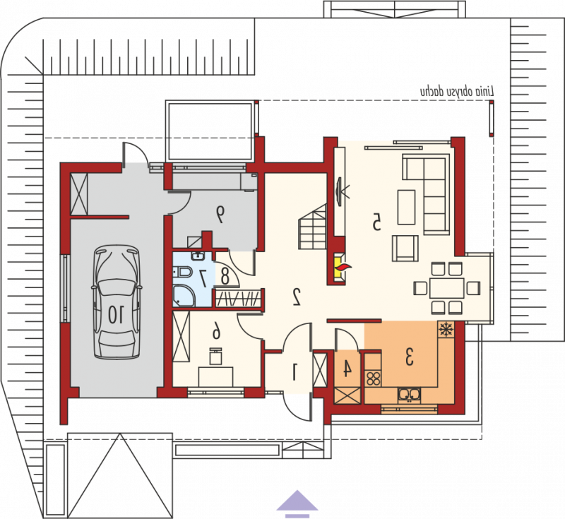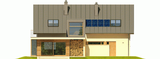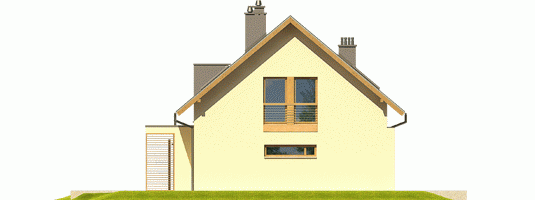 Dom parterowy z poddaszem użytkowym, niepodpiwniczony z garażem jednostanowiskowym. Przeznaczony dla 4-5-osobowej rodziny. Na parterze zaprojektowano strefę dzienną: salon z kominkiem, jadalnię oraz kuchnię. Znalazł się tu również gabinet, toaleta oraz praktyczne pomieszczenie gospodarcze. Strefę nocną zlokalizowano na poddaszu. Tworzą ją trzy wygodne sypialnie, w tym jedna z własną garderobą i łazienką. Funkcjonalny układ pomieszczeń uzupełnia dodatkowa, duża łazienka oraz garderoba. Kamelia G1 to przykład nowoczesnej interpretacji klasycznej bryły domu. Elewację ogrodową zdobi ciekawie zaprojektowany wykusz. Imponująca ilość przeszkleń zaprasza do wnętrz mnóstwo słonecznego światła, tworząc jasną, przytulną atmosferę. Elewacja utrzymana w smakowitej waniliowej tonacji została zaakcentowana elementami drewna. Urok całości podkreślają eleganckie żaluzje, które chronią domowników przed nadmiernym nasłonecznieniem. W bryłę budynku zgrabnie wkomponowano sporych rozmiarów garaż oraz pomysłowy schowek na drewno. Istnieje możliwość: - podpiwniczenia budynku - zbliźniaczenia - wykonania domu dwulokalowego