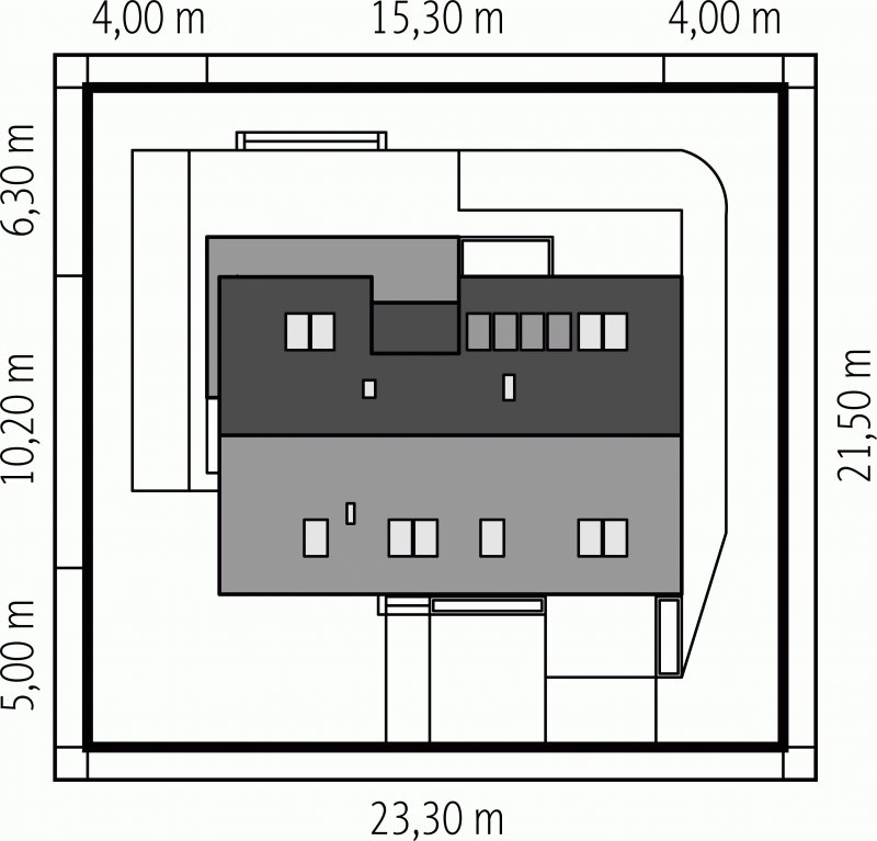 - Min. wymiary działki 23.30x21.50 m