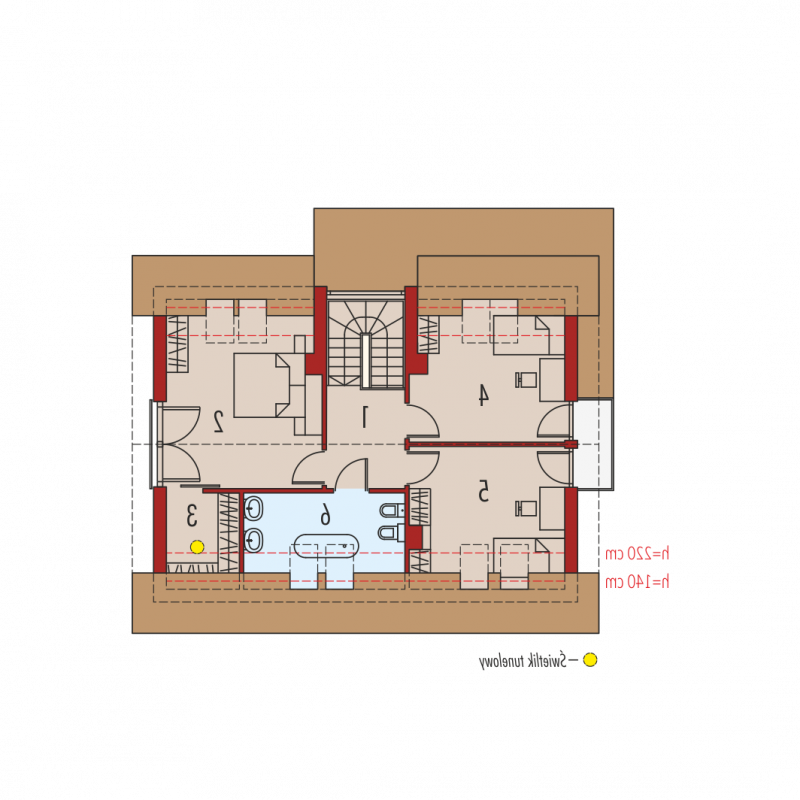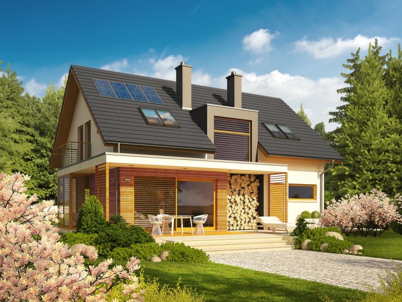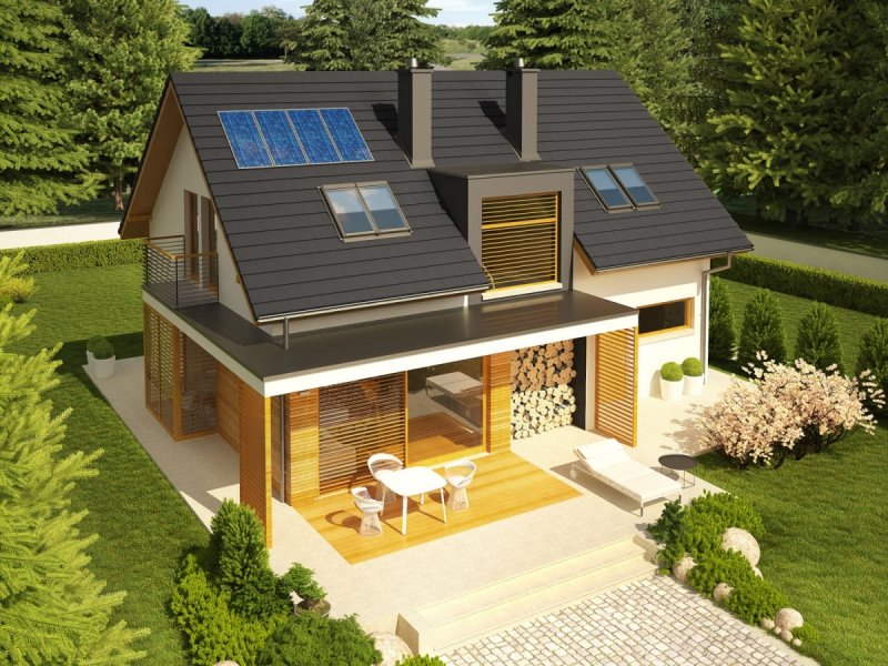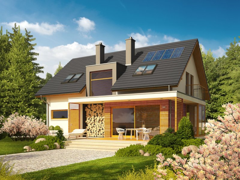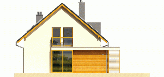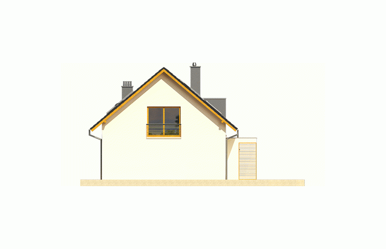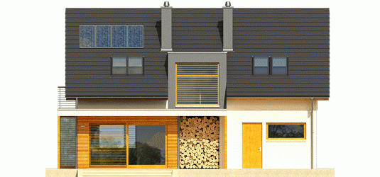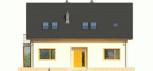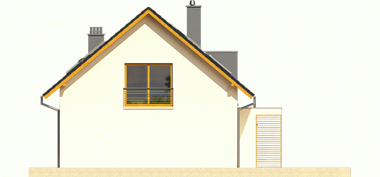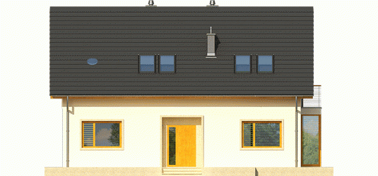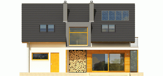 Dom parterowy z poddaszem użytkowym, niepodpiwniczony. Przeznaczony dla 4-5-osobowej rodziny. Na parterze zaprojektowano strefę dzienną: salon z kominkiem, jadalnię oraz kuchnię ze spiżarnią. Znalazł się tu również gabinet, toaleta oraz duże pomieszczenie gospodarcze. Strefę nocną zlokalizowano na poddaszu. Tworzą ją trzy wygodne sypialnie, w tym jedna z własną garderobą. Funkcjonalny układ pomieszczeń uzupełnia dodatkowa, duża i wygodna łazienka. Katja to dom zaprojektowany z najwyższą troską o ergonomię i funkcjonalną wygodę. Perfekcyjny rozkład pomieszczeń maksymalnie wykorzystuje przestrzeń użytkową i naturalne światło, które dzięki dużej ilości okien swobodnie przenika do wnętrz. Elegancka prostota bryły została wzbogacona ciekawymi detalami – m.in. atrakcyjnym zadaszeniem tarasu oraz subtelną kompozycją drewnianych rolet. Przytulny charakter budynku podkreśla elewacja utrzymana w ciepłych kolorach, nowoczesnego pazura dodają całości metalowe balustrady. Istnieje możliwość: - podpiwniczenia budynku - zbliźniaczenia - wykonania domu dwulokalowego