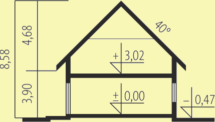 - Kąt nachylenia dachu 40.00°