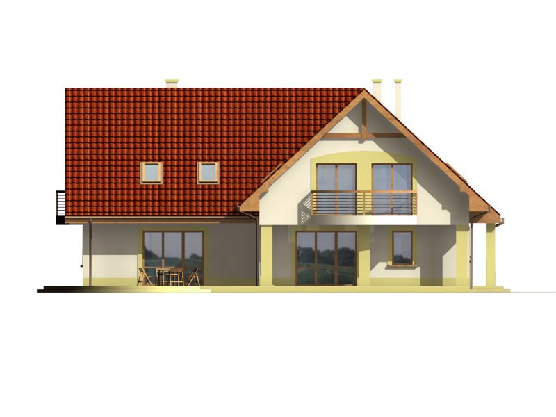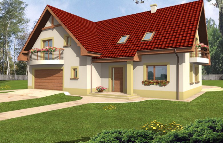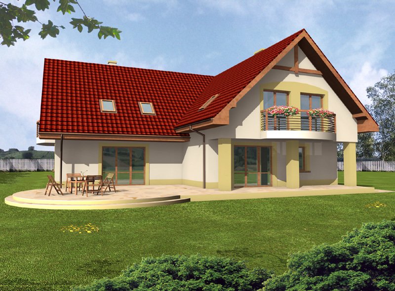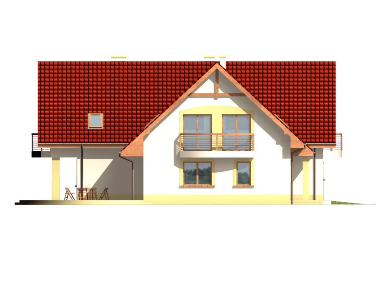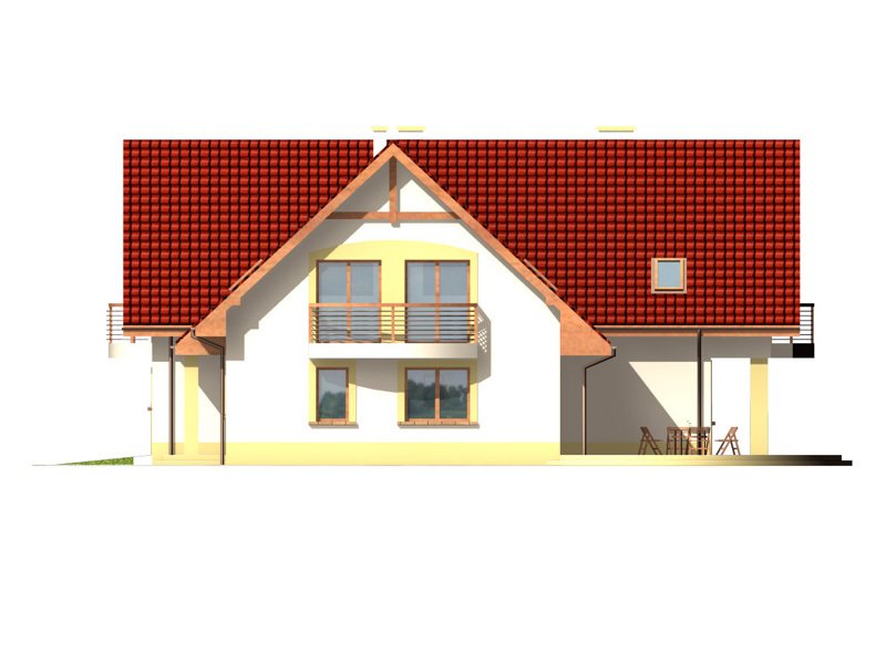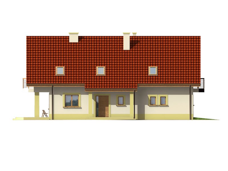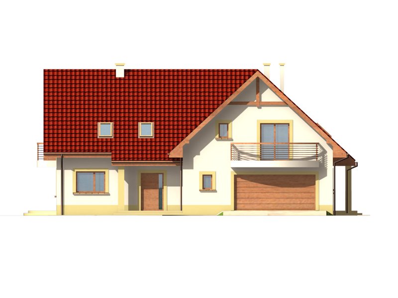 Klaudia jest domem dwurodzinnym, który może służyć jako dom przeznaczony dla dwóch pokoleń rodziny: np. rodziców z dziećmi oraz dziadków. Część rodziców z dziećmi o większej powierzchni, zlokalizowana jest od frontu natomiast część seniorów znajduje się w tylnej częśc domu i posiada odrębne wejście z boku. Dom jest niepodpiwniczony z użytkowym poddaszem i wbudowanym dwustanowiskowym garażem.