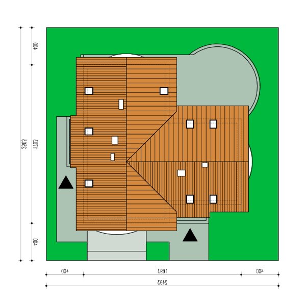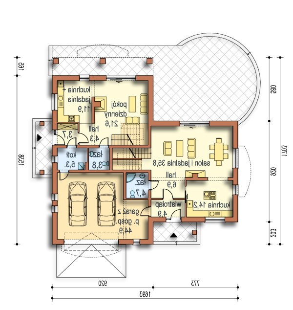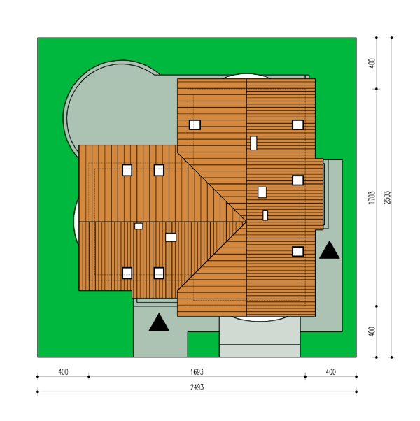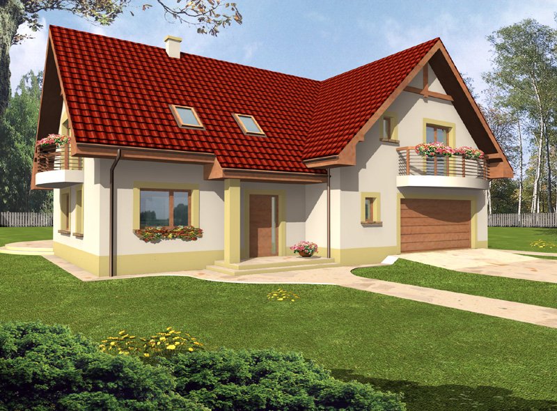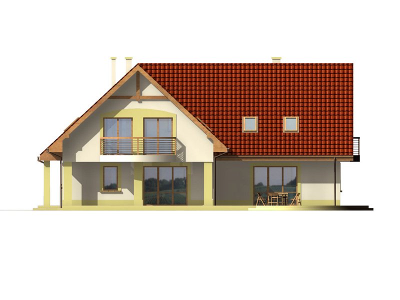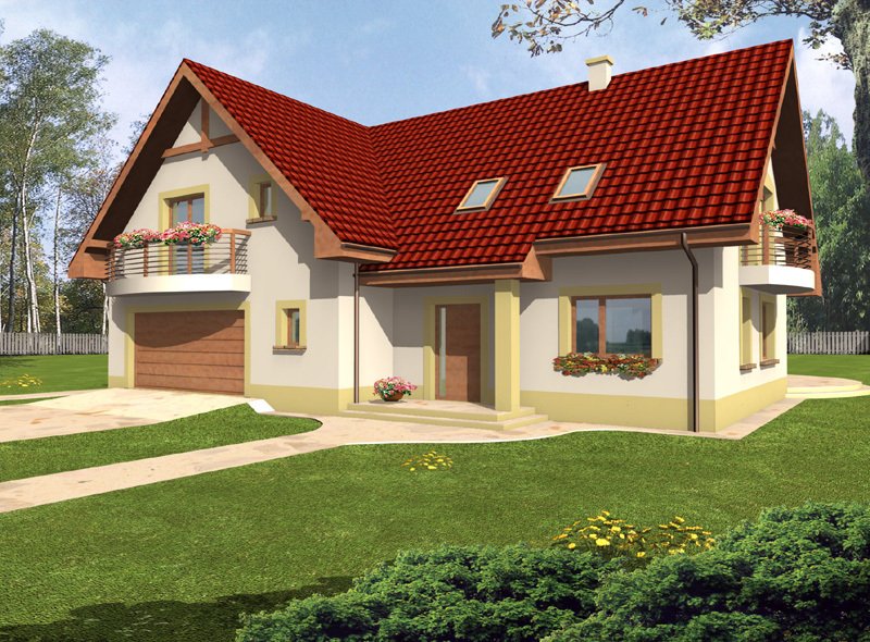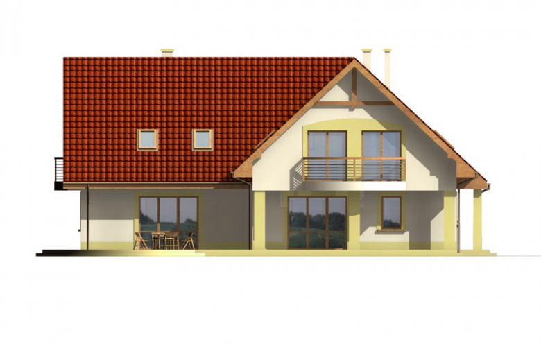 Klaudia jest domem dwurodzinnym, który może służyć jako dom przeznaczony dla dwóch pokoleń rodziny: np. rodziców z dziećmi oraz dziadków. Część rodziców z dziećmi o większej powierzchni, zlokalizowana jest od frontu natomiast część seniorów znajduje się w tylnej częśc domu i posiada odrębne wejście z boku. Dom jest niepodpiwniczony z użytkowym poddaszem i wbudowanym dwustanowiskowym garażem.