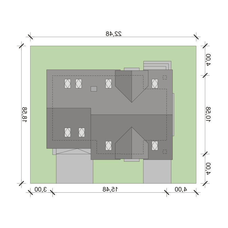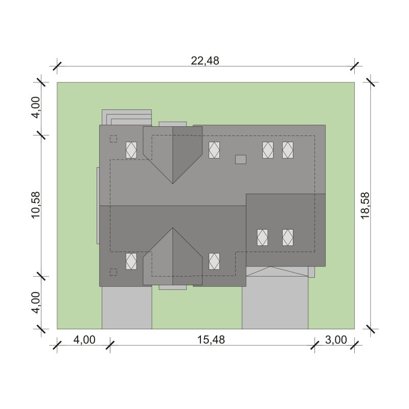 - Min. wymiary działki 22.48x18.58 m