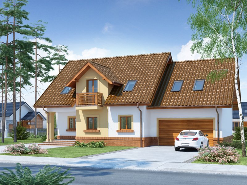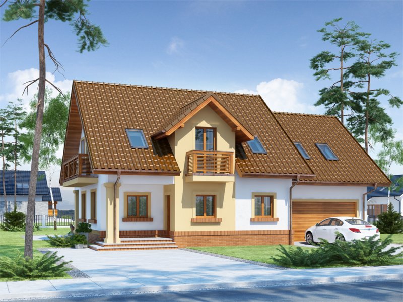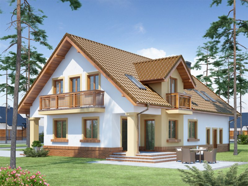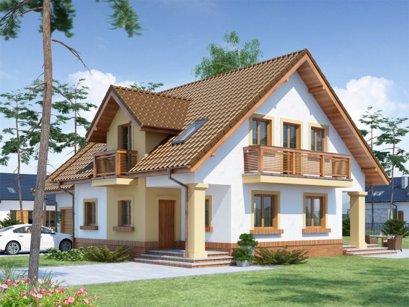 Koleta 2 to dom jednorodzinny z użytkowym poddaszem, przeznaczony dla 4-osobowej rodziny z ciekawą elewacją z elementami kamienia. Doskonale wpisuje się zarówno w teren zabudowany jak i w otwartą przestrzeń. Na parterze domku znajduje się otwarta kuchnia w bliskim sąsiedztwie z jadalnią. Kuchnię z łatwością można wydzielić ściankami działowymi. W celu zwiększenia powierzchni użytkowej istnieje możliwość zabudowy podcienia zyskując większą przestrzeń w jadalni i salonie. Otwarta klatka schodowa pozwala na zróżnicowaną aranżację wnętrza.