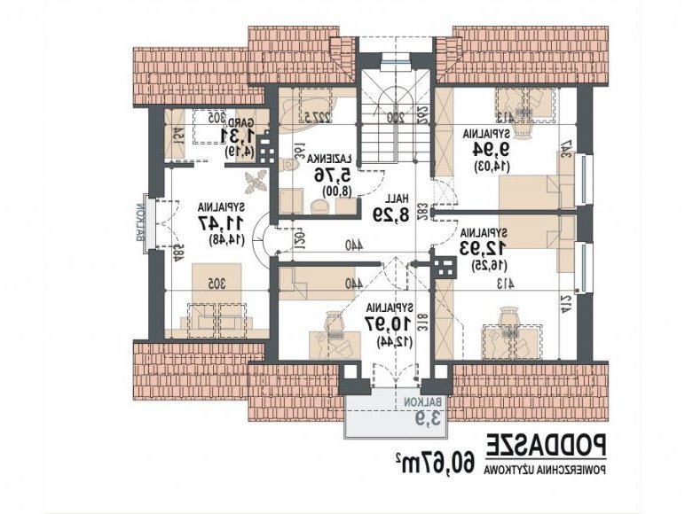 dach: o konstrukcji drewnianej z pokryciem z dachówki ceramicznej, cementowej lub blachodachówki