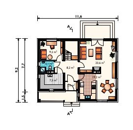 - pokój dzienny 23.6 m2