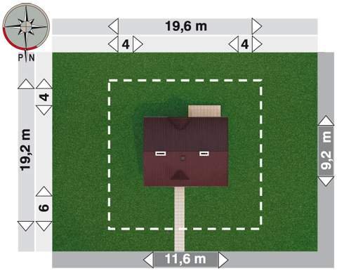 - Min. wymiary działki 19.60x19.20 m