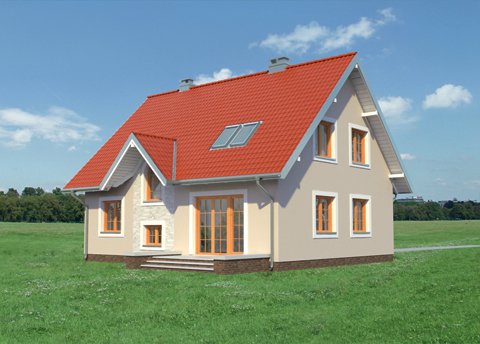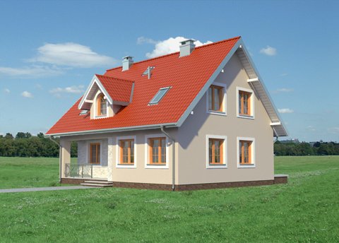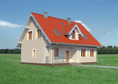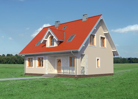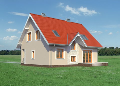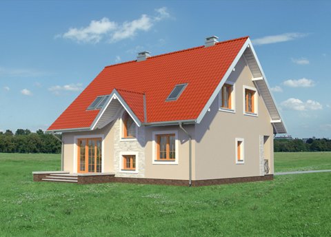 Według projektu domu Krzemyk Beta można zbudować dom parterowy średniej wielkości, z użytkowym poddaszem, bez garażu, o bardzo tradycyjnej sylwetce. Ma prostokątny rzut, ekonomiczny dwuspadowy dach z kalenicą równoległą do drogi dojazdowej i proste detale. Są to: narożna wnęka wejściowa ze słupem i dwie małe lukarny z zamkniętym łukiem oknem w każdej z połaci. Program użytkowy wpisano w ekonomiczny układ trzech traktów konstrukcyjno - funkcjonalnych. Środkowy z nich zajmuje komunikacja, która rozdziela kuchnię z salonem od kotłowni, łazienki i dodatkowego pokoju. Układ pokoju dziennego pozwala zaaranżować mniej lub bardziej otwarte wnętrza. Cztery sypialnie na poddaszu wyposażono w wygodne wbudowane szafy i oświetlono oknami o tradycyjnych proporcjach w symetrycznie rozrysowanych ścianach szczytowych oraz oknami dachowymi. Tylko łazienka poddasza i schody mają lukarny dzięki czemu bryła dachu pozostaje prosta i masywna. Wpisuje się to w koncepcję projektu domu Krzemyk Beta jako budynku bez balkonów, nawiązującego do architektury małych miasteczek. Nieco większą powierzchnię i wersję z garażem proponują inne warianty z Rodziny Krzemyka.