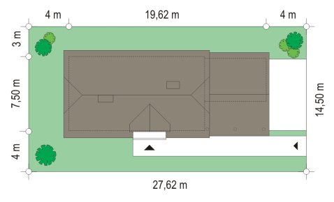 - Min. wymiary działki 27.62x14.50 m