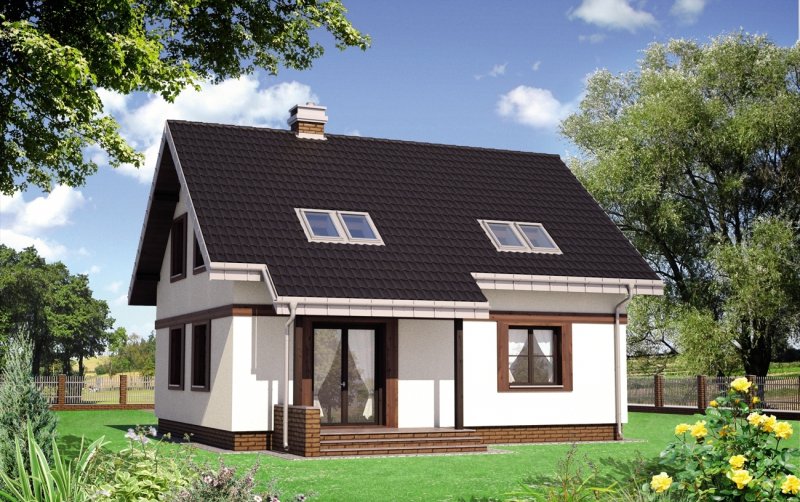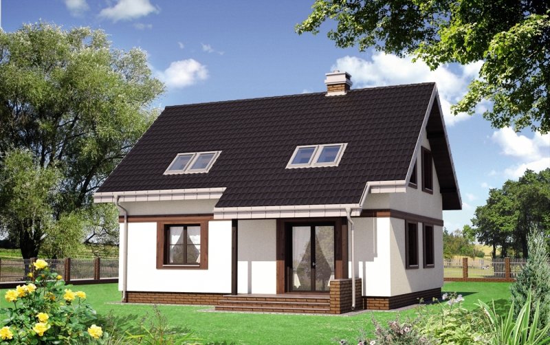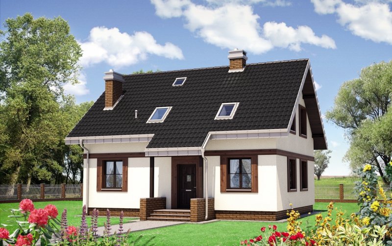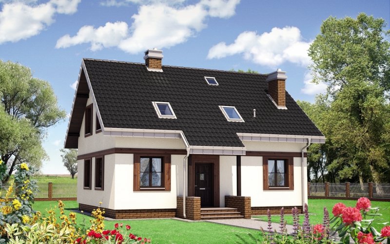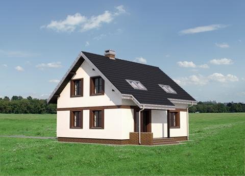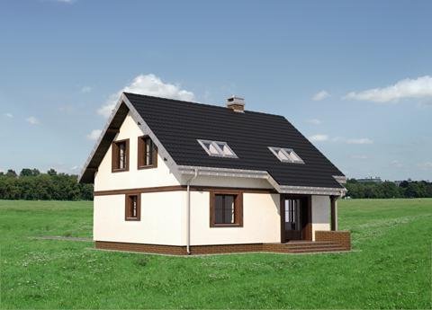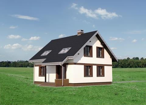 Kuklik to projekt domu parterowego z użytkowym poddaszem należący do najbardziej ekonomicznych w realizacji koncepcji o powierzchni ok. 105m2. Tak jak zbliżone: Pączek i Sambor ma energooszczędny, zwarty, prostokątny rzut i dwuspadowy, prosty dach bez lukarn z kalenicą równoległa do drogi dojazdowej Mniejsza jest kotłownia stanowiąca wydzielona część łazienki, bardziej oszczędnie rozrysowano zabiegowe schody. Podobny jest prosty dwuspadowy dach i program użytkowy mieszkania z otwartą strefą dzienną i dodatkowym pokojem na parterze. Trzy sypialnie na poddaszu wyposażono w wygodną łazienkę. W projekcie domu Kuklik inaczej rozwiązano akcentowanie wejścia frontowego proponując najprostszy daszek w postaci częściowo przedłużonego okapu głównej połaci.