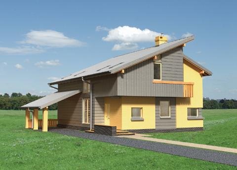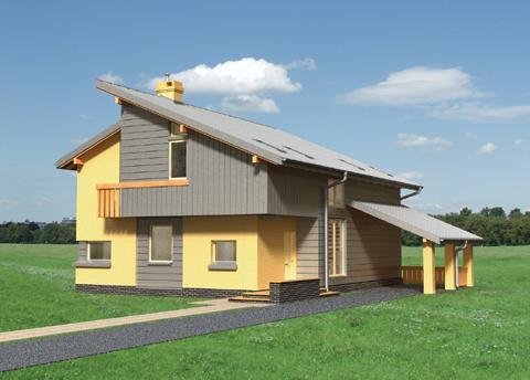 Koncepcja domu parterowego, z użytkowym poddaszem, niepodpiwniczonego, z wiatą na samochód