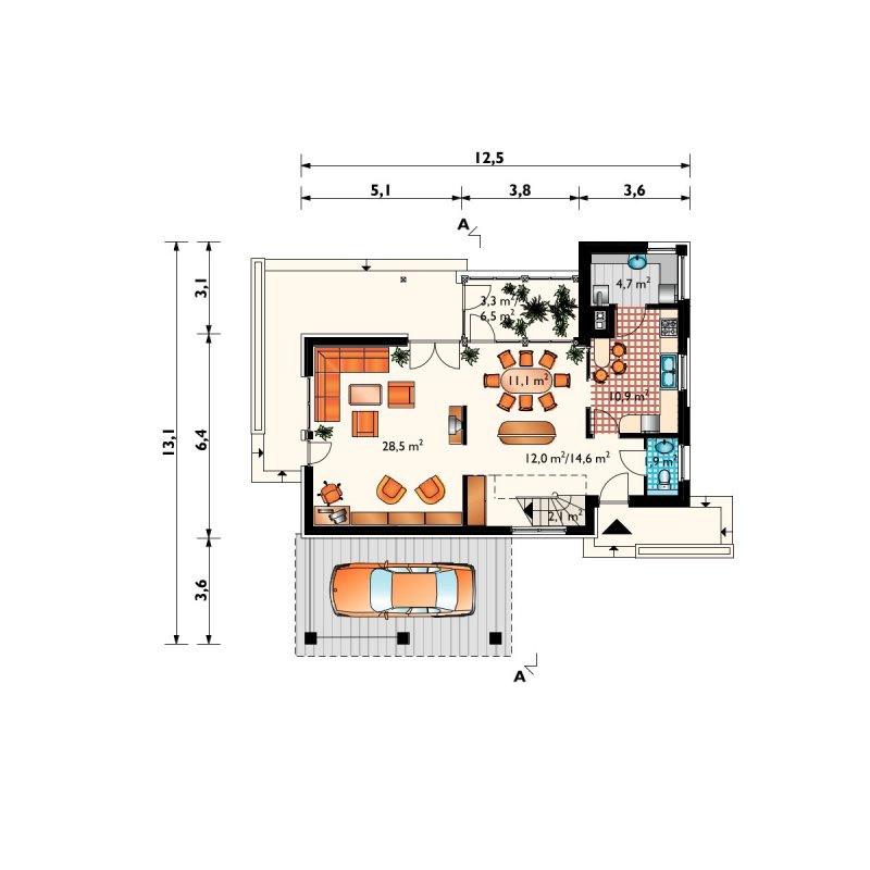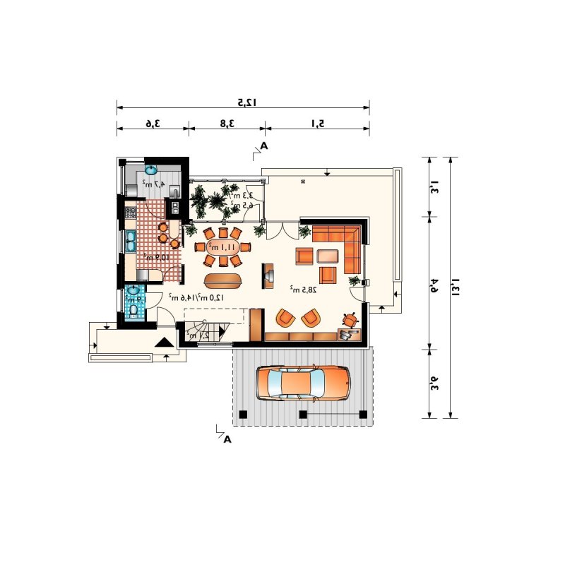 - pokój dzienny 28.5 m2