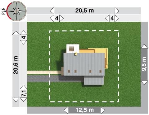 - Min. wymiary działki 20.60x20.50 m