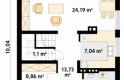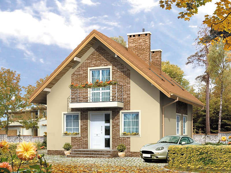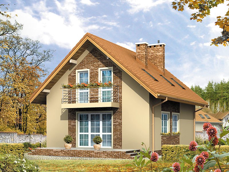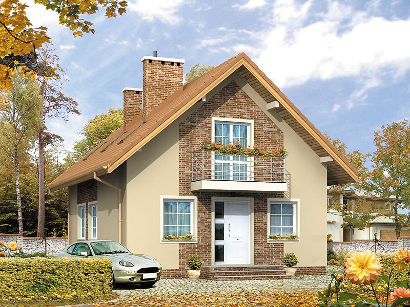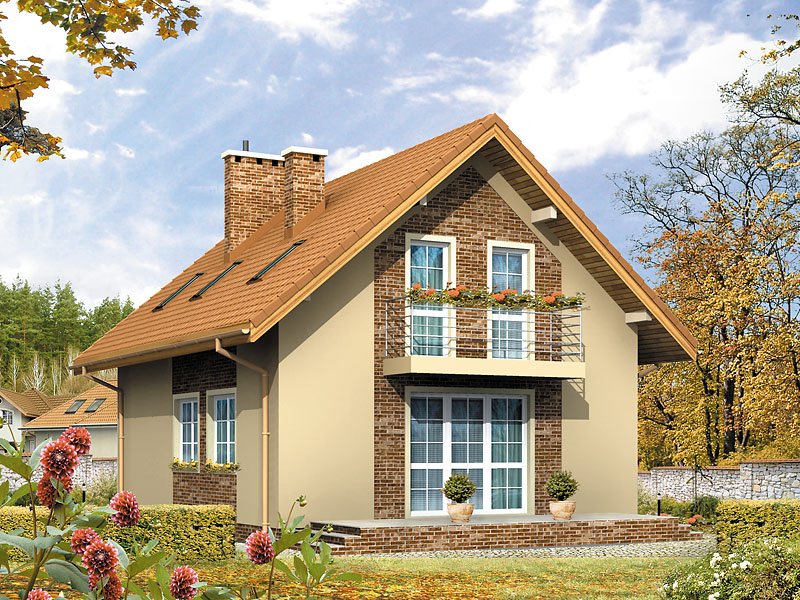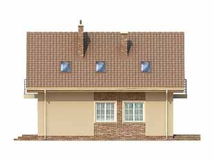 Niewielki dom o prostej bryle, niepodpiwniczony. Budynek posiada trzy sypialnie na poddaszu oraz gabinet na parterze.