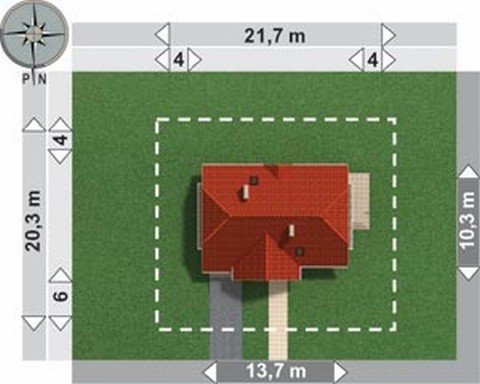 - Min. wymiary działki 22.00x21.70 m