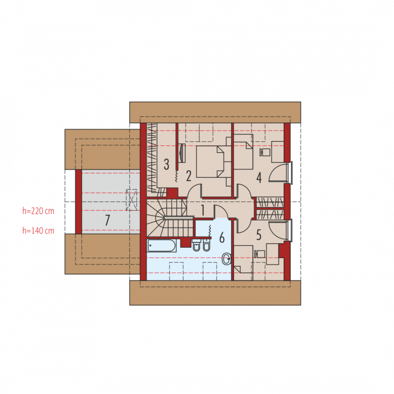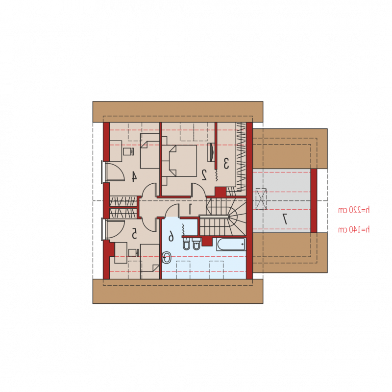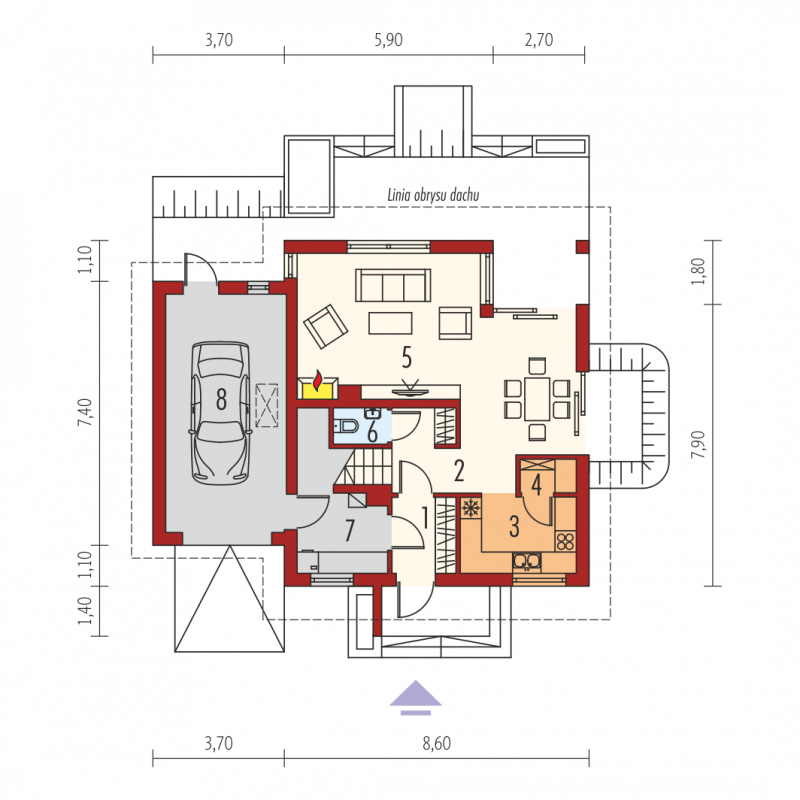 Dom parterowy z poddaszem użytkowym, niepodpiwniczony z garażem jednostanowiskowym. Przeznaczony dla 4-5-osobowej rodziny. Na parterze zaprojektowano strefę dzienną: salon z kominkiem, jadalnię oraz kuchnię ze spiżarnią. Znalazła się tu również toaleta oraz praktyczne pomieszczenie gospodarcze. Strefę nocną zlokalizowano na poddaszu. Tworzą ją trzy wygodne sypialnie, w tym jedna z własną garderobą. Dla wygody domowników zaplanowano przestronną, komfortową łazienkę. Dom Liv 4 G1 to doskonała propozycja dla miłośników ascetycznej elegancji. Prosta forma oraz surowa estetyka elewacji zostały przełamane ciepłym odcieniem drewna, które harmonijnie łączy dom z otaczającą go naturą. Dużym atutem projektu jest czytelny podział funkcjonalny – aktywna strefa dzienna zaplanowana na parterze, sąsiaduje z wyraźnie odseparowaną strefą nocną na poddaszu, gdzie nastrojową atmosferę kreują m.in. okna połaciowe. Domownicy szukający odpoczynku w przydomowym ogrodzie, z całą pewnością docenią komfortowy, zadaszony taras, ciekawie zaakcentowany stylową kolumną. Istnieje możliwość: - podpiwniczenia budynku - zbliźniaczenia - wykonania domu dwulokalowego