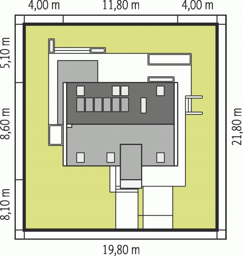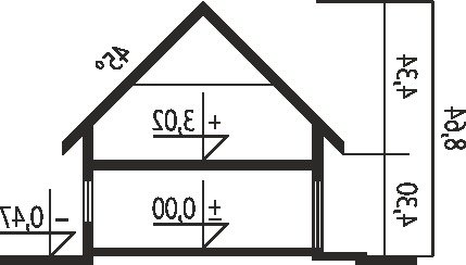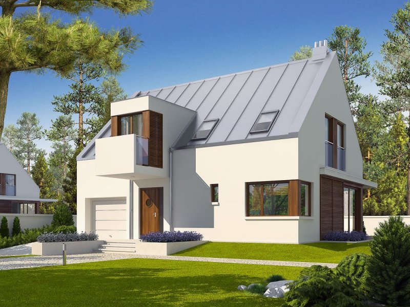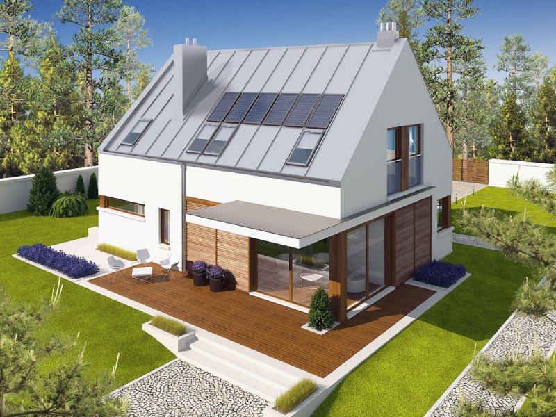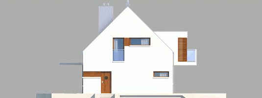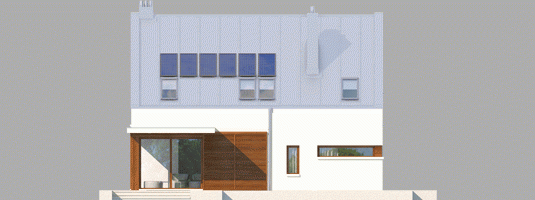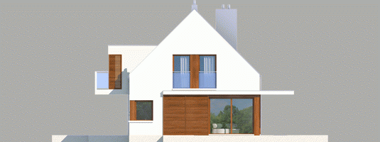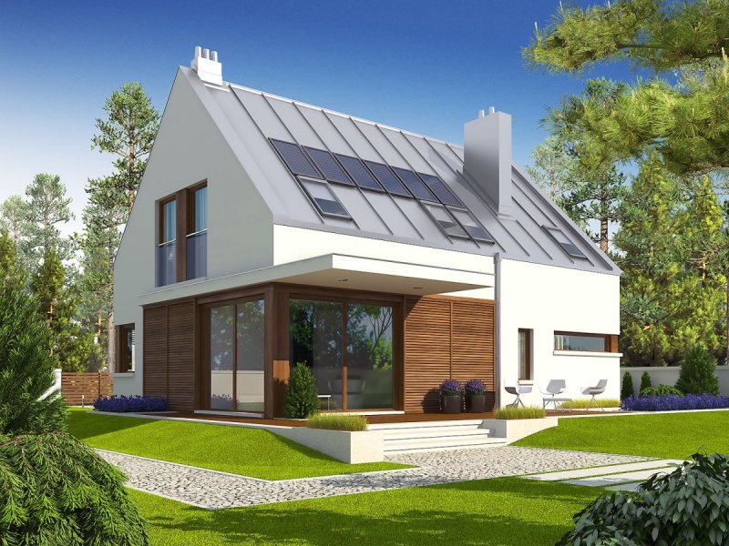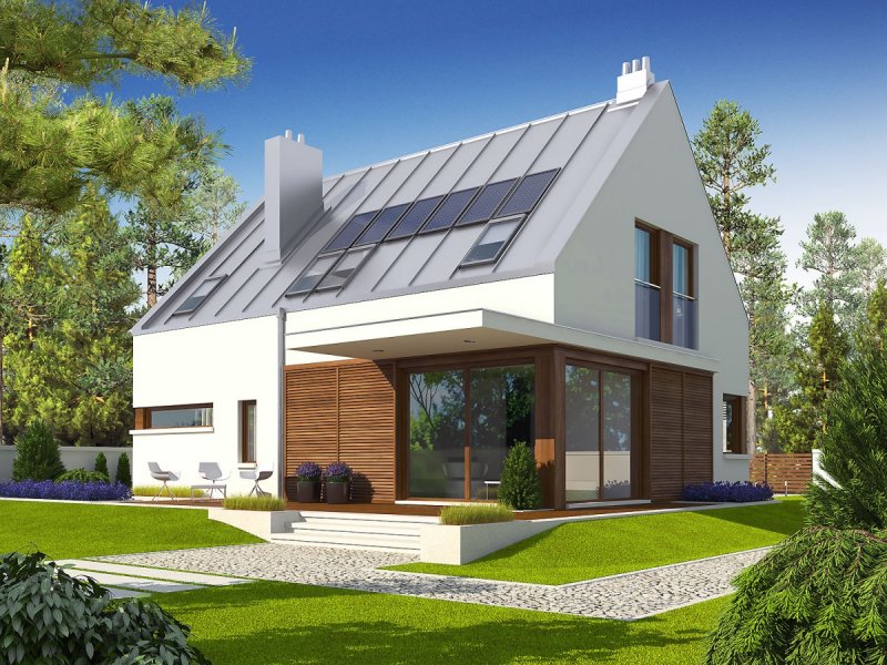 Dom zaprojektowany w technologii murowej ze stropem gęstożebrowym. Schody wewnętrzne drewniane. Dach o konstrukcji drewnianej pokryty blachą na rąbek stojący Classic firmy Ruukki. Elewacje wykończono tynkiem mineralnym i okładziną drewnianą. Stolarka okienna drewniana lub PCV. W projekcie zastosowano rozwiązania firmy VELUX.
