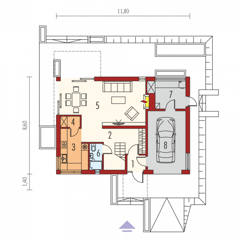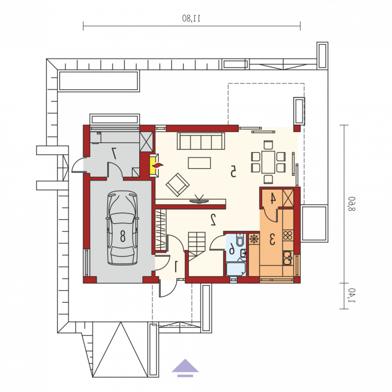 Dom parterowy z poddaszem użytkowym, niepodpiwniczony, z garażem jednostanowiskowym. Przeznaczony dla 4-5-osobowej rodziny. Na parterze zaprojektowano strefę dzienną: salon z kominkiem, jadalnię oraz kuchnię ze spiżarnią. Znalazła się tu również łazienka i duże pomieszczenie gospodarcze z kotłem grzewczym. Strefę nocną zlokalizowano na poddaszu. Tworzą ją cztery wygodne sypialnie oraz duża łazienka. Dom Liv 6 G1 to doskonała propozycja dla miłośników nowoczesnego designu. Prosta bryła budynku została urozmaicona oryginalnymi detalami – elewację frontową zdobi atrakcyjny wykusz, elewacja ogrodowa czaruje komfortowym tarasem z ciekawie zaprojektowanym zadaszeniem, wzbogaconym o nastrojowe oświetlenie. Wnętrze domu maksymalnie wykorzystuje przestrzeń użytkową, a komfortowy podział stref gwarantuje pełną swobodę codziennego funkcjonowania. Elegancki charakter budynku podkreśla wysmakowana kompozycja bieli i drewna. W domu zaprojektowanym w duchu nowoczesności nie mogło zabraknąć kolektorów słonecznych, które dumnie połyskują na dachu. Istnieje możliwość: - podpiwniczenia budynku - zbliźniaczenia - wykonania domu dwulokalowego