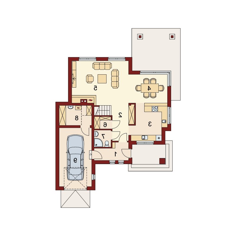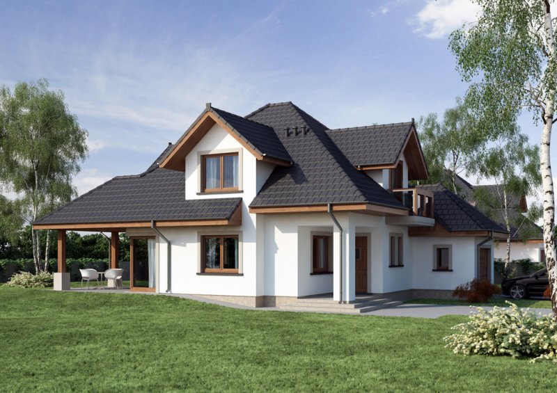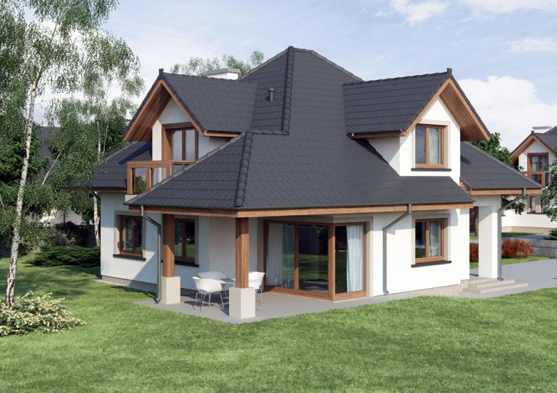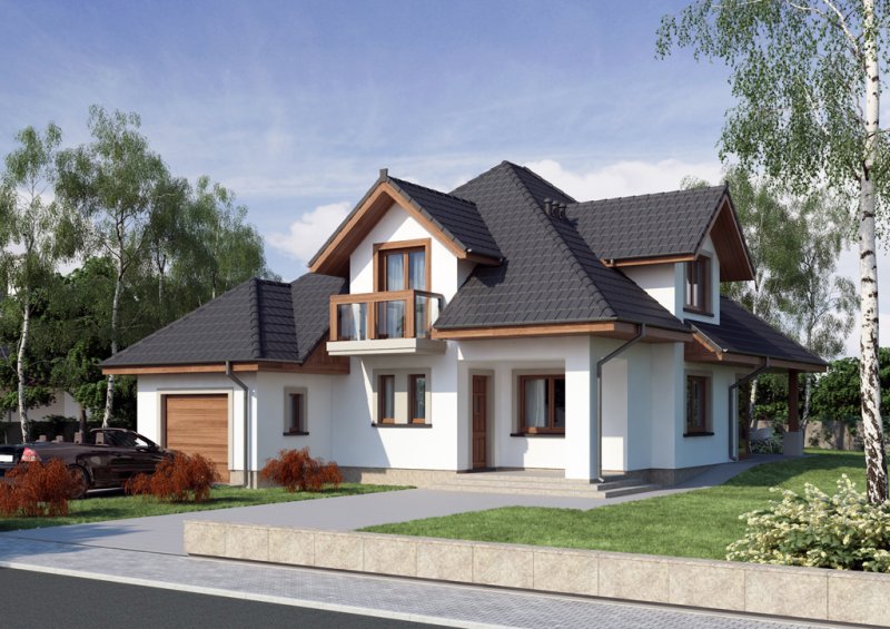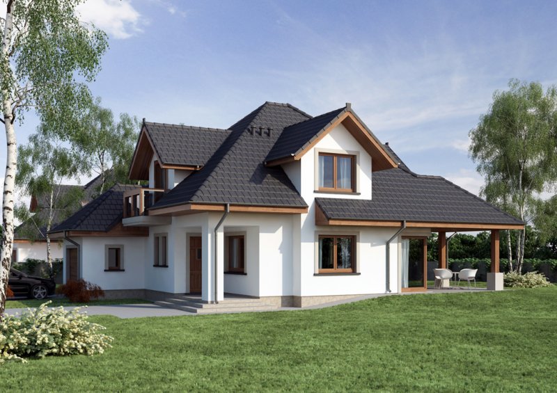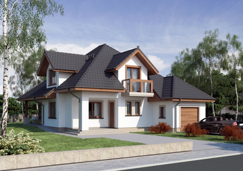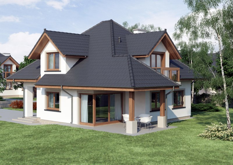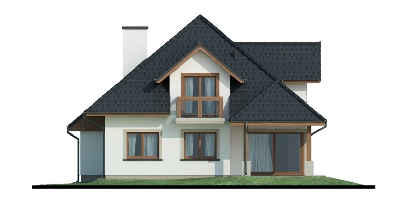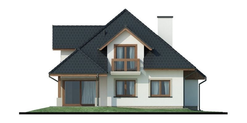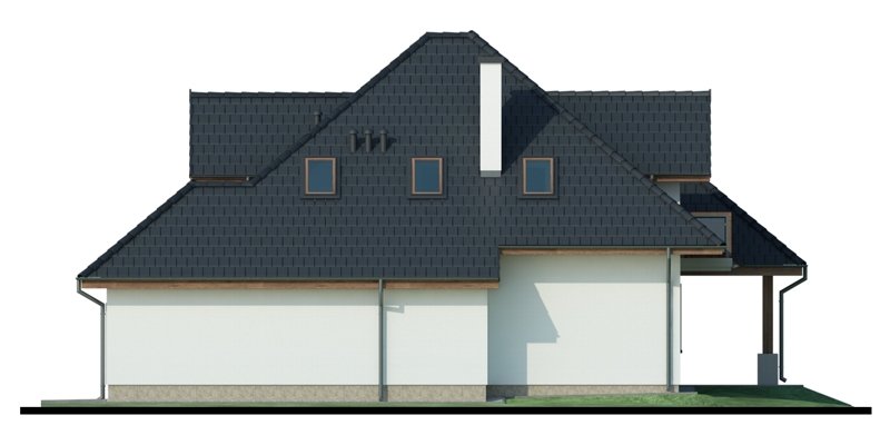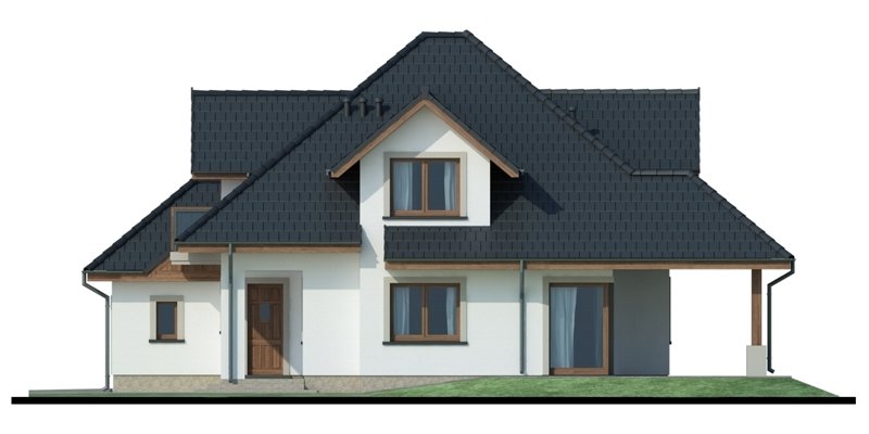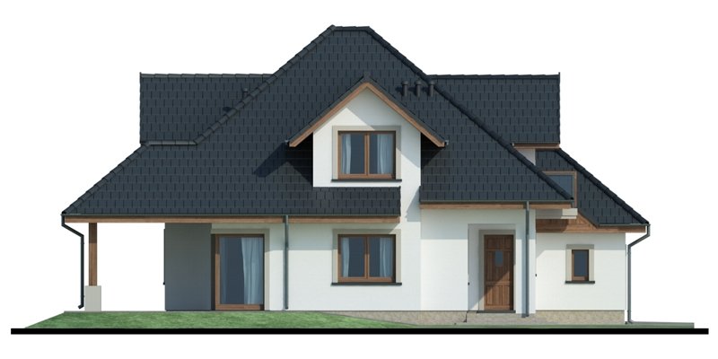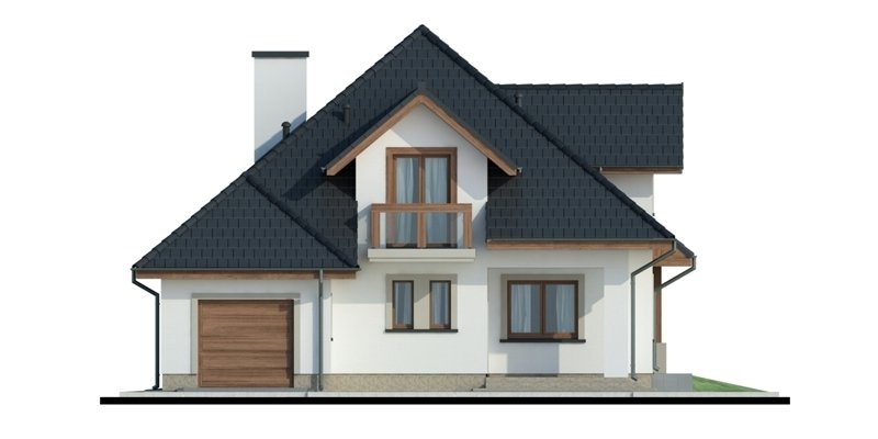 Reprezentacyjny dom jednorodzinny z poddaszem użytkowym. W projekcie optymalnie wykorzystano przestrzeń. Obszerny salon, a także otwarta kuchnia usytuowana w pobliżu jadalni sprzyja życiu rodzinnemu.