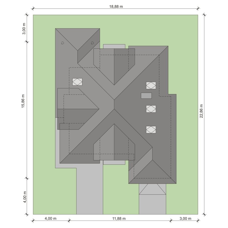 - Min. wymiary działki 18.88x22.86 m