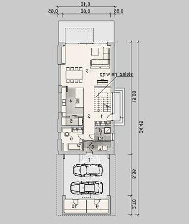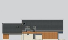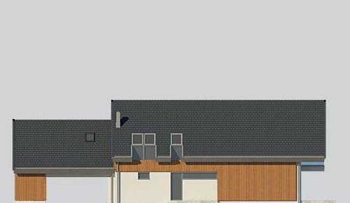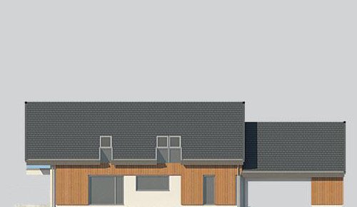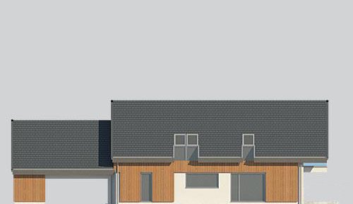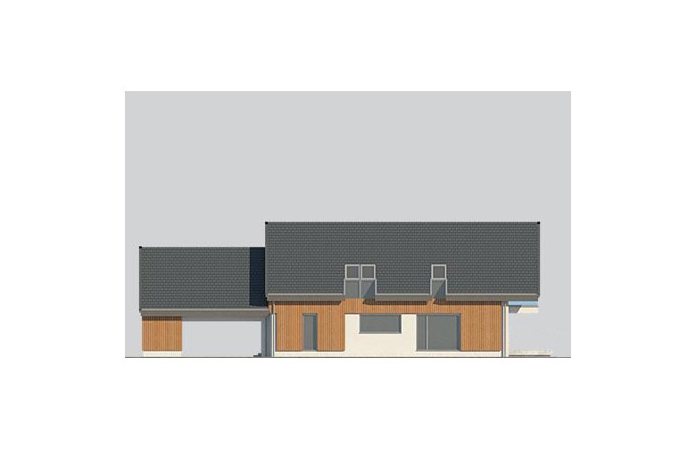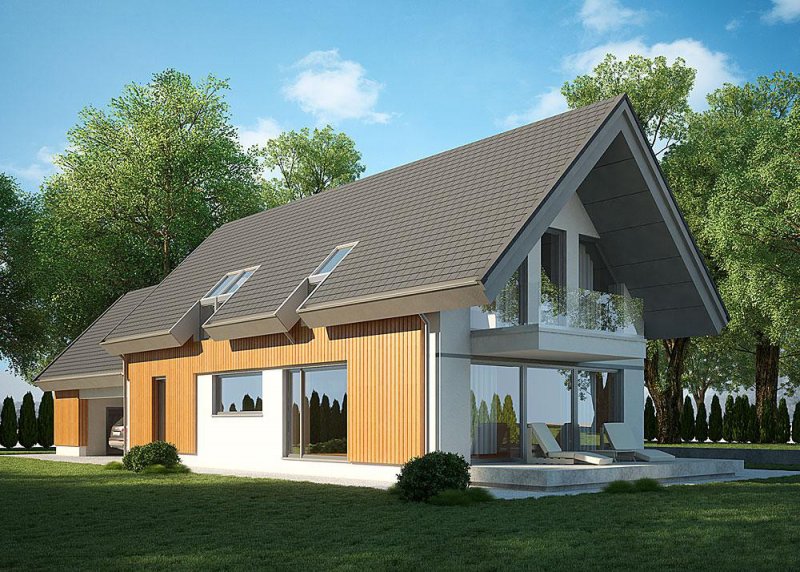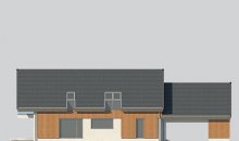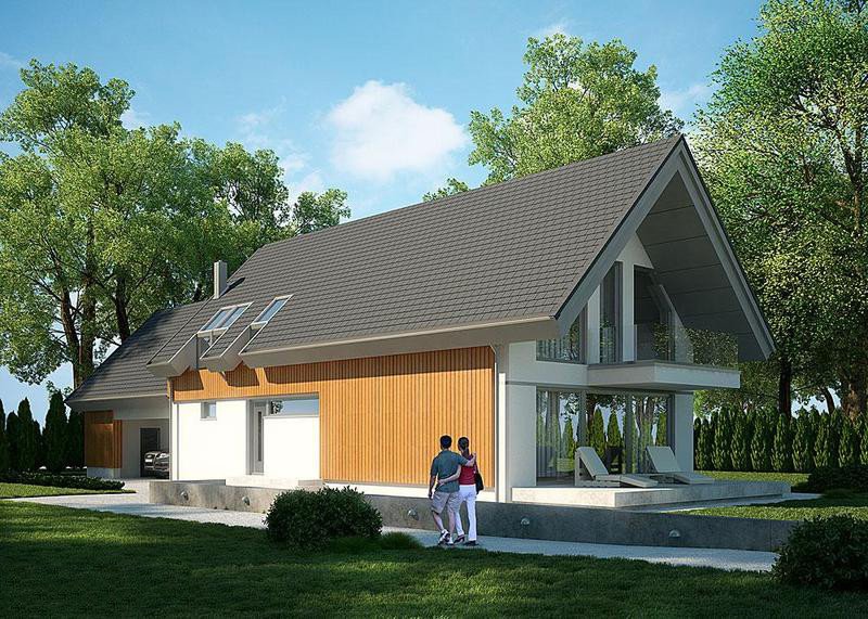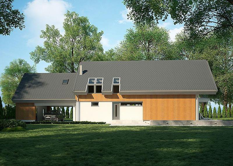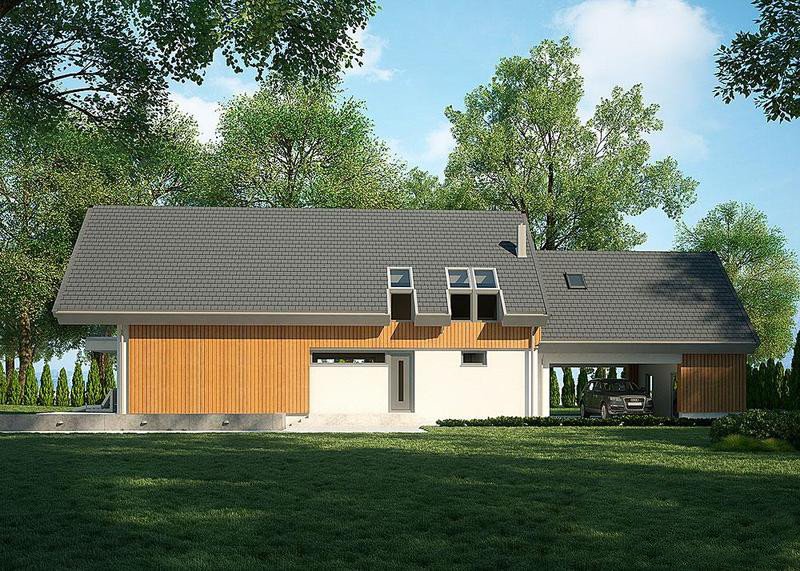 Dom z poddaszem, wzbogacony o dwa stanowiska garażowe pod wiatą. Idealny projekt dla osób szukających tradycyjnych brył o nowoczesnym wykończeniu.
