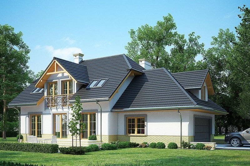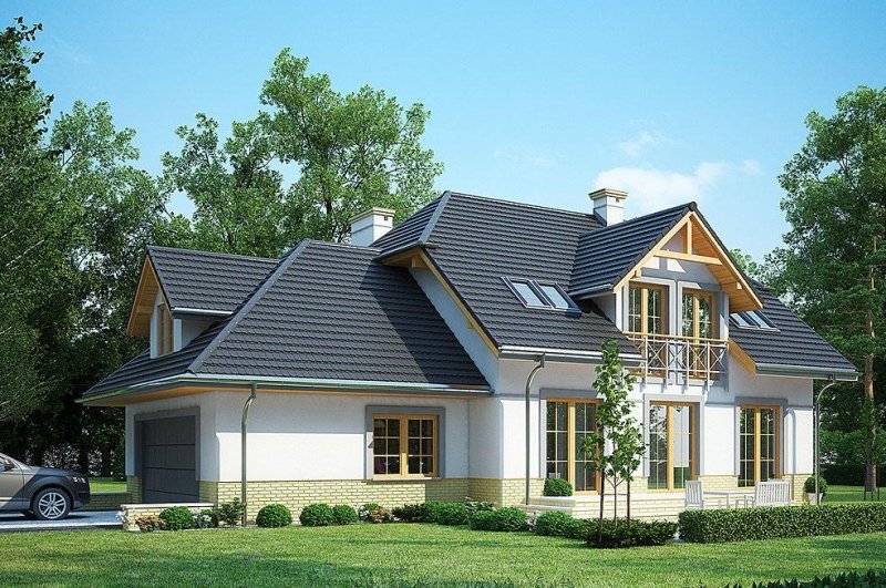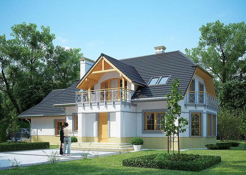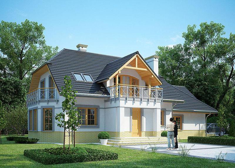 LK&1107 to projekt domu z poddaszem, który posiada tradycyjną bryłę i nowoczesne wykończenie.