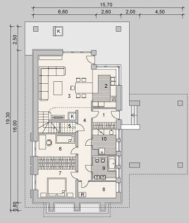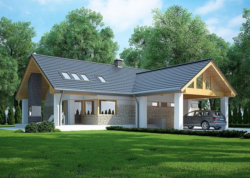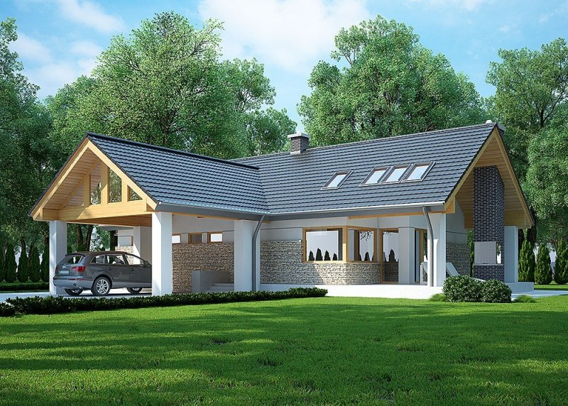 Jednorodzinny budynek mieszkalny, parterowy z użytkowym poddaszem.
