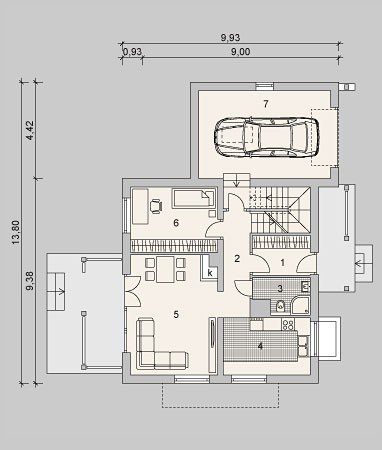 - Min. wymiary działki 21.80x18.88 m