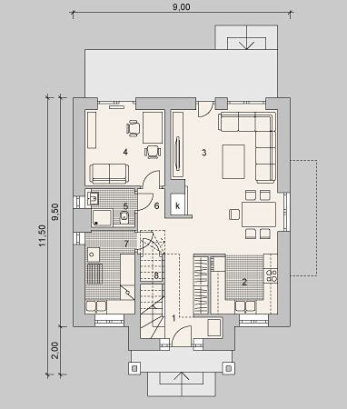 - Kotłownia z pralnią 7,15 m2