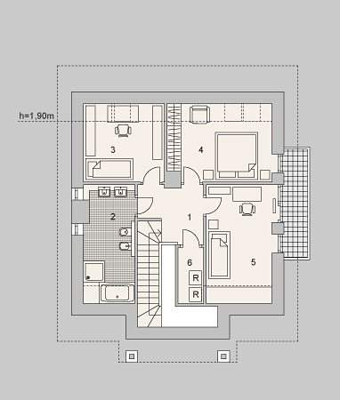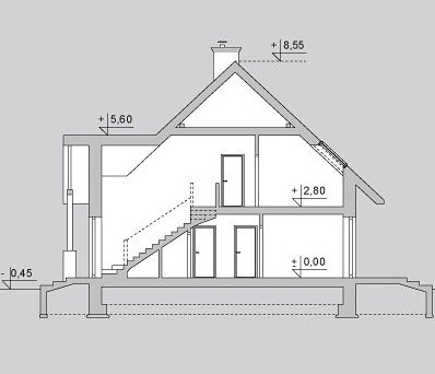 Jednorodzinny budynek mieszkalny, parterowy z użytkowym poddaszem.