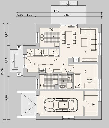 - Pokrycie dachu: dachówką ceramiczną