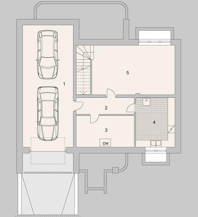 Dom jednorodzinny z poddaszem użytkowym, podpiwniczony z 2 stanowiskowym garażem zlokalizowanym w piwnicy