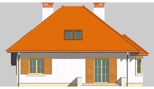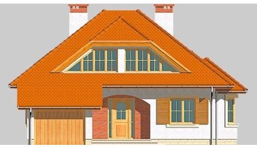 Dom jednorodzinny, parterowy, z poddaszem użytkowym i jednostanowiskowym garażem.