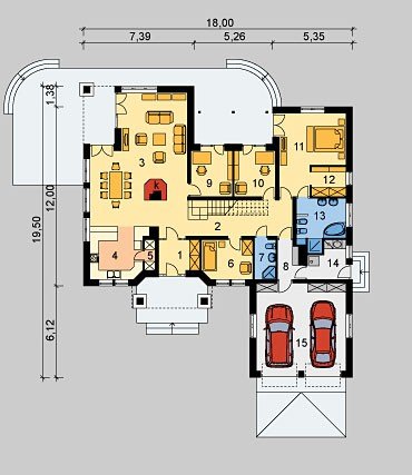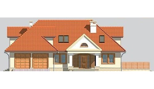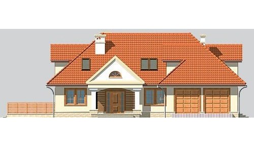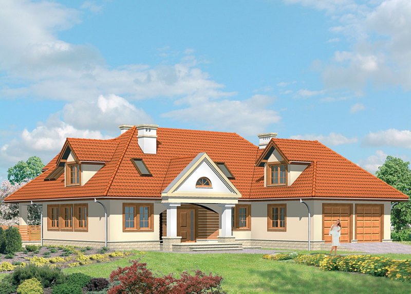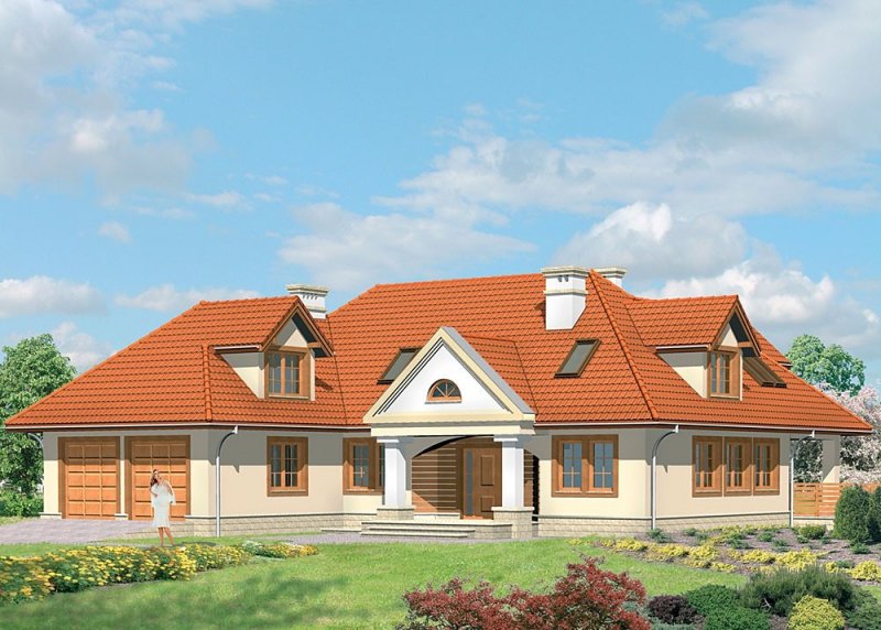Dom jednorodzinny, z użytkowym poddaszem i dwustanowiskowym garażem.