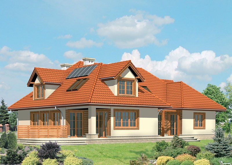 - Pokrycie dachu: dachówką ceramiczną 'Koramic' firmy 'Wienerberger'